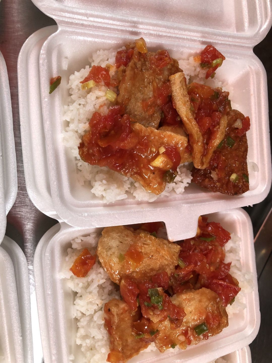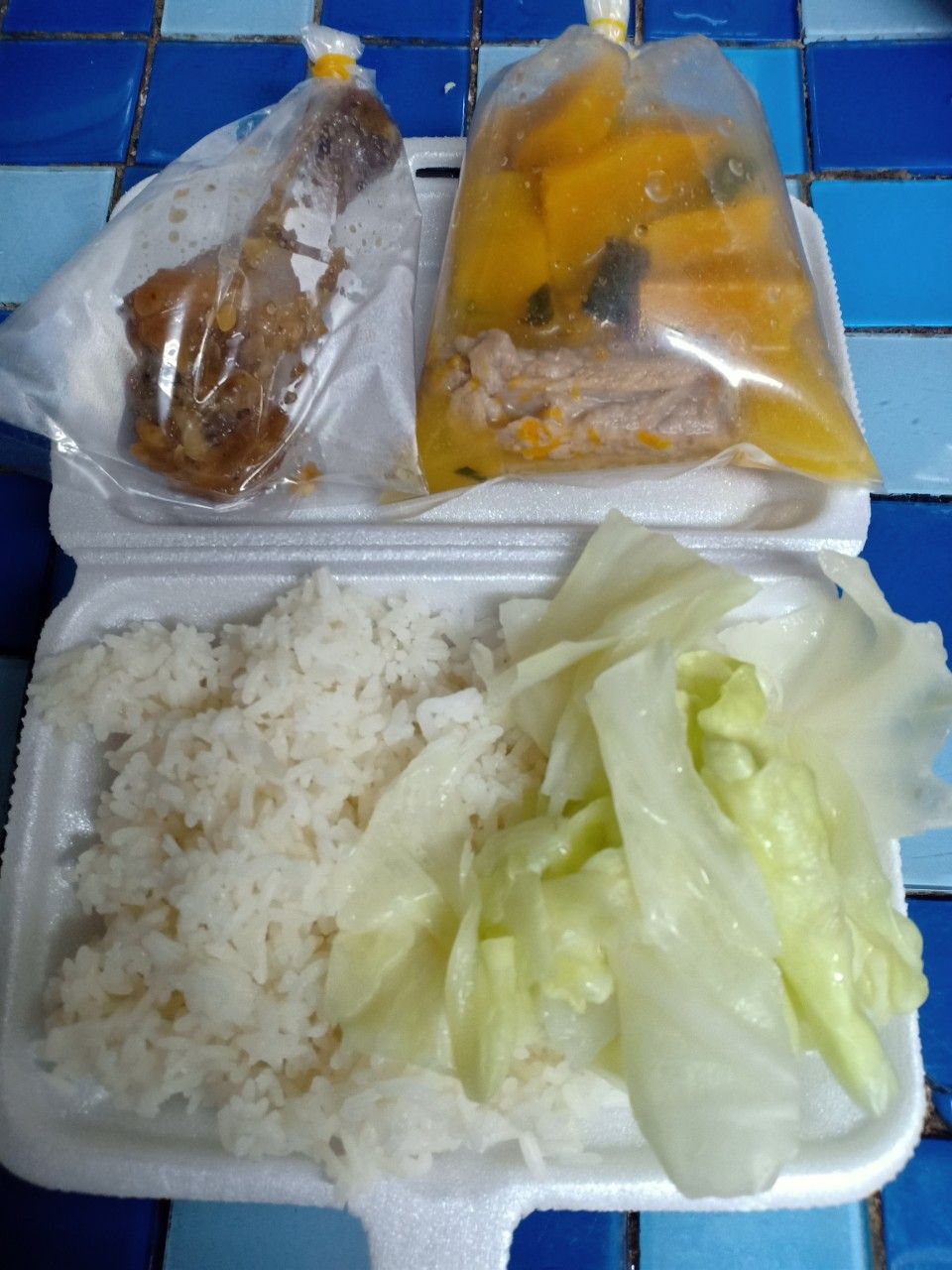 - trưa : 64 phần cơm chả cá sốt cà, canh cải mặn nấu xương.