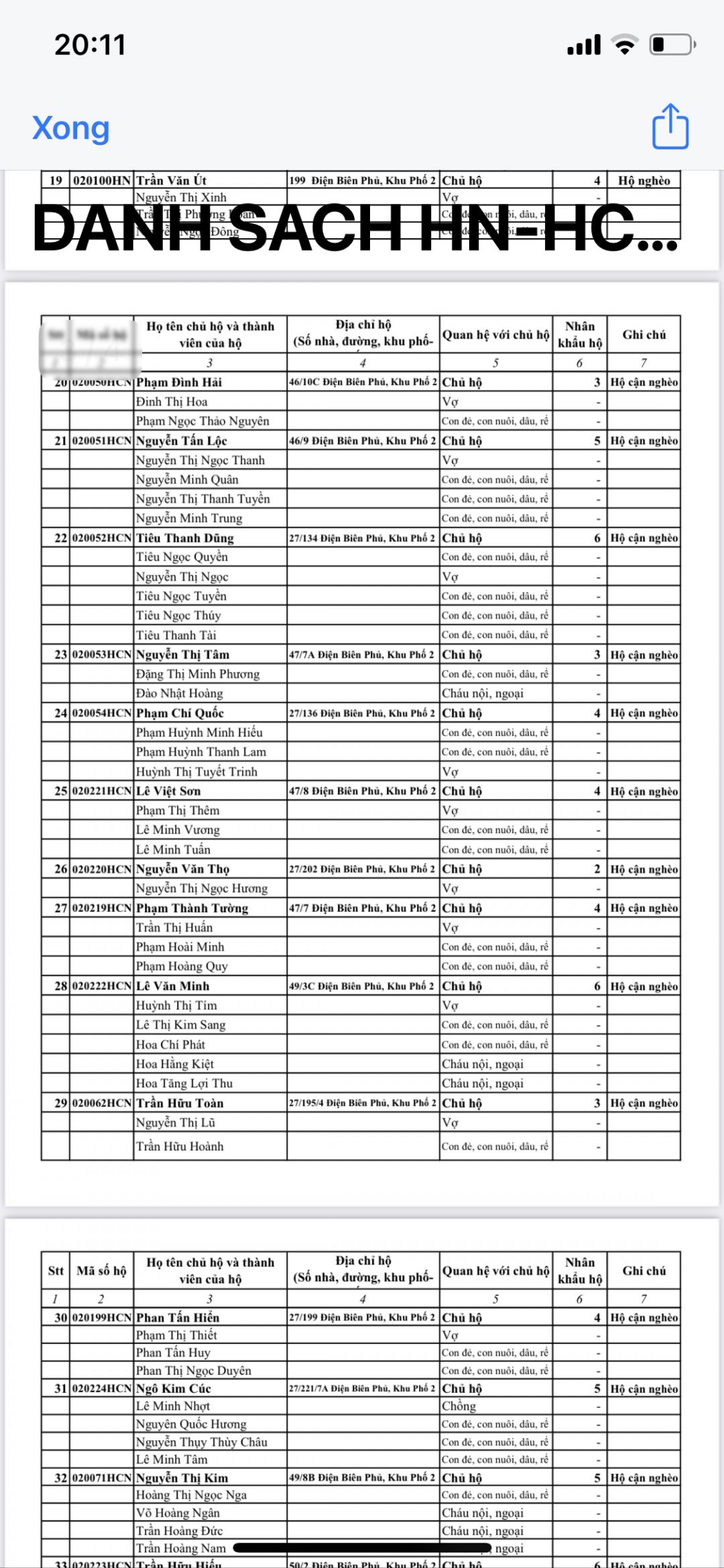 - Tổng hợp danh sách gồm thông tin & số lượng bà con sẽ nhận thức ăn.