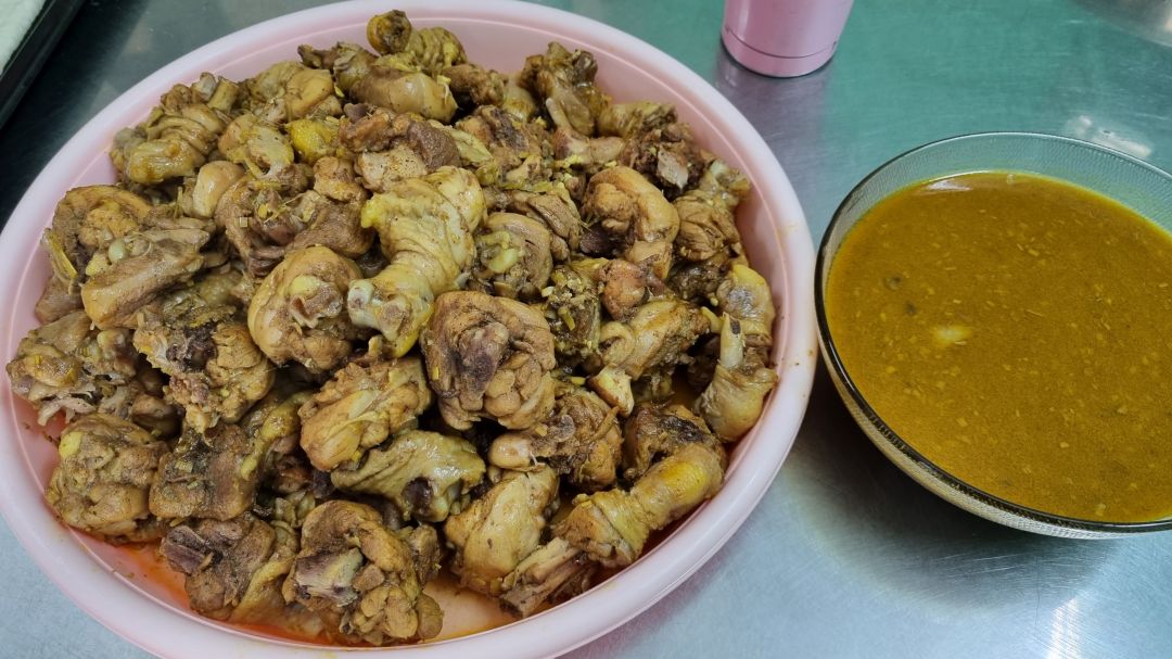 - Gà kho sả cary.