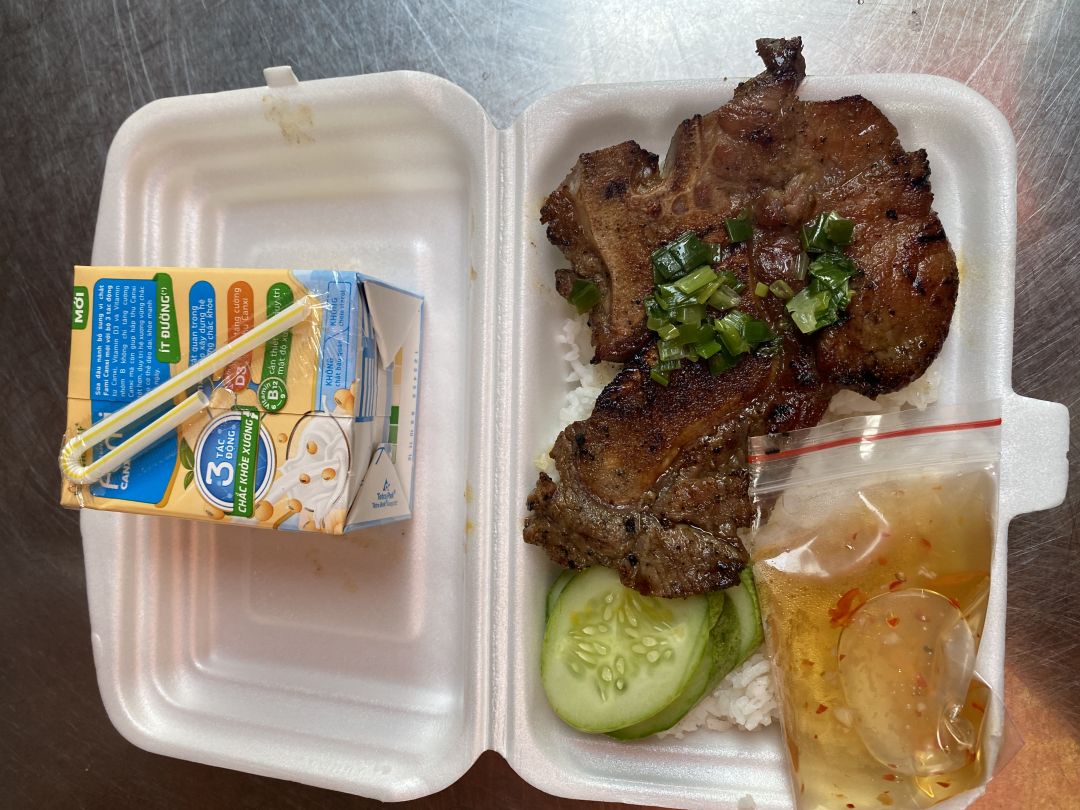 - chiều : 64 phần cơm sườn nướng, sữa fami.
