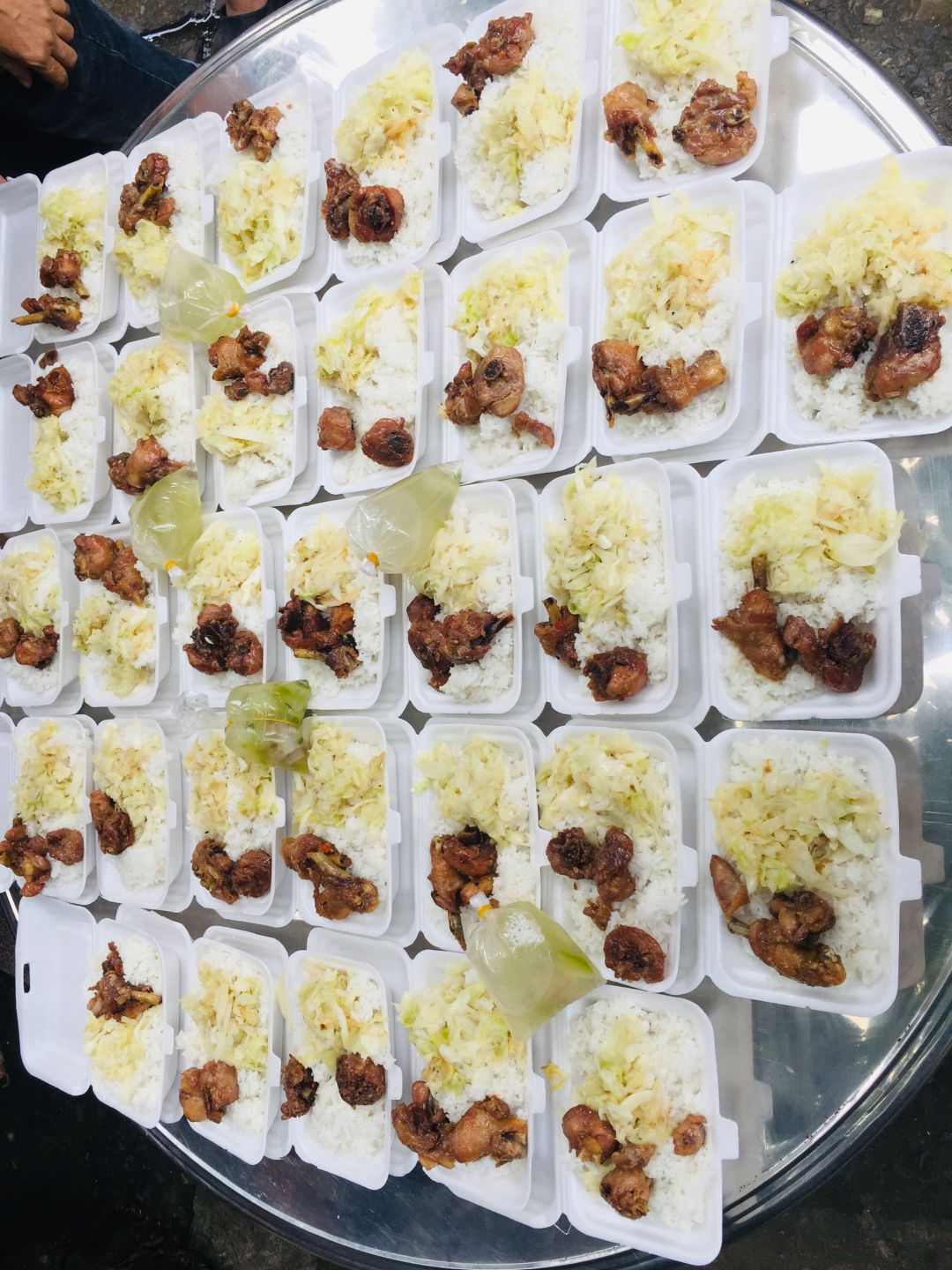 - chiều : 64 phần cơm đùi gà nướng, canh soup xương.