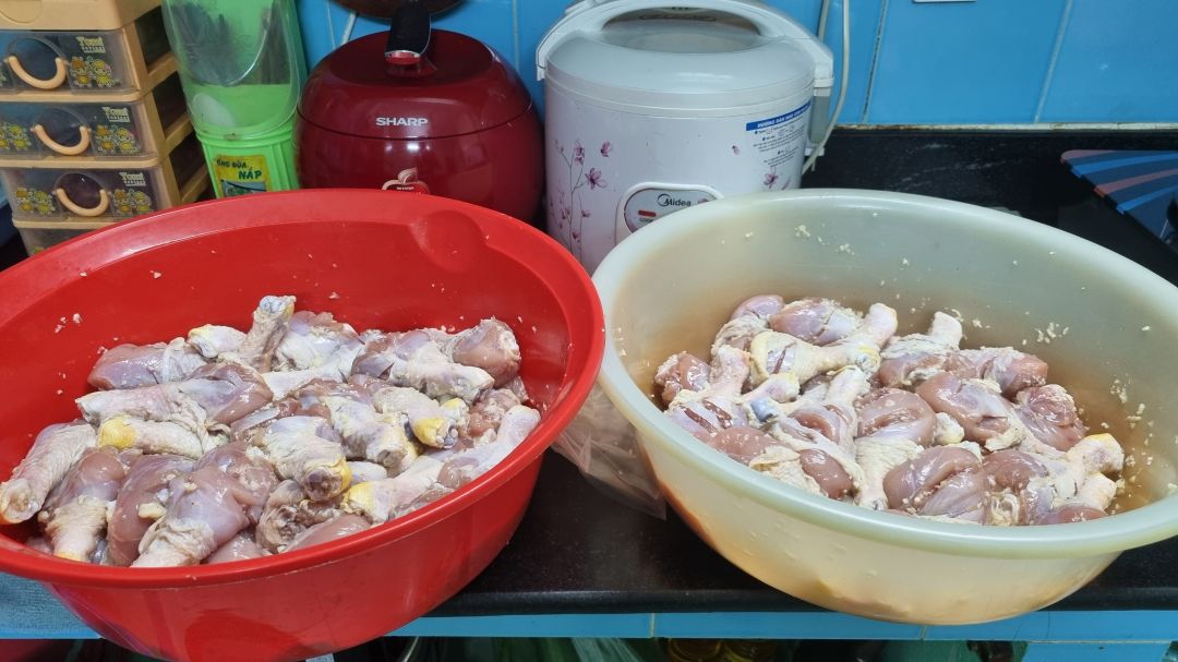 nên số lượng đùi gà không đủ.Mai Trâm đã dùng trứng gà chiên và canh để phục vụ bà con. ngày mai.Mai Trâm xin đăng ký nấu 60 phần cơm tại bếp nhà chỗ Mai Trâm nghe cả nhà.