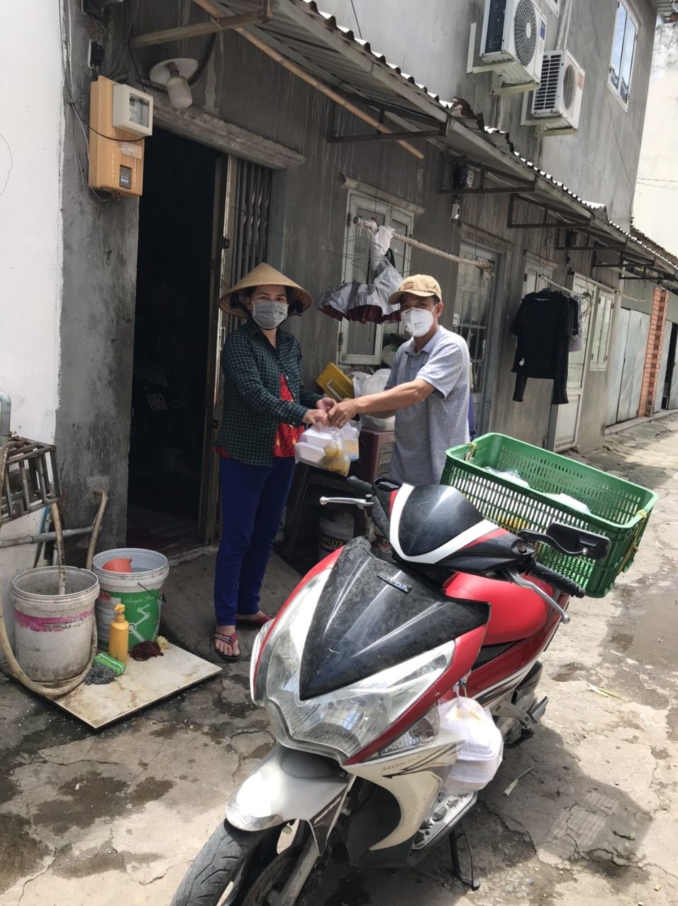 -    Cách thức giao: đại diện một người trong số 38 hộ đến hỗ trợ phát cơm.