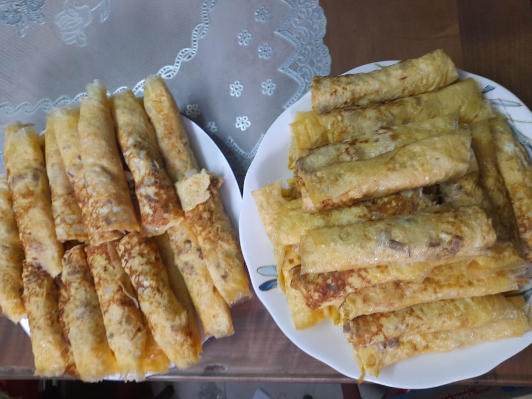 - Trứng chiên cải xá bấu cuộn