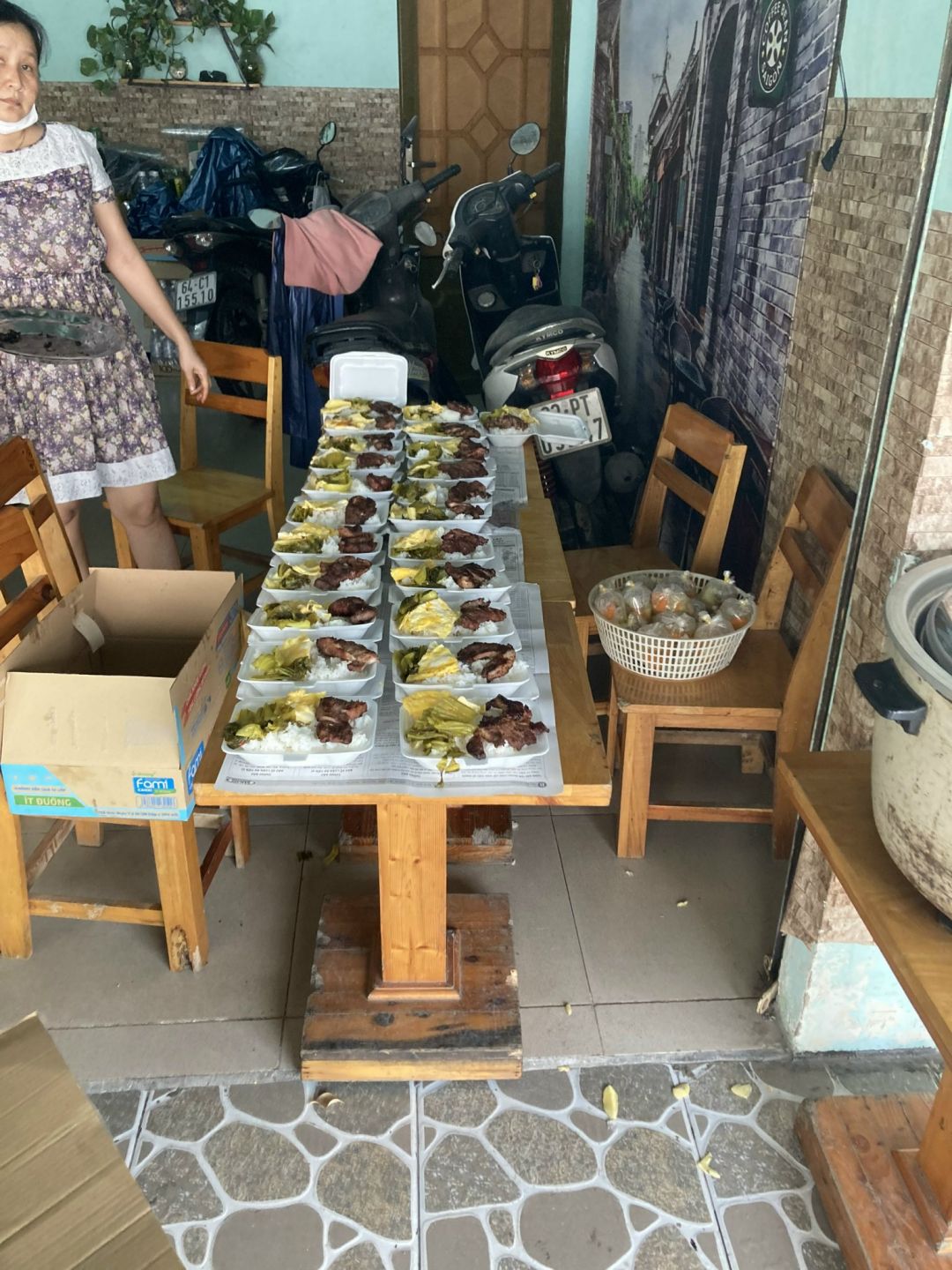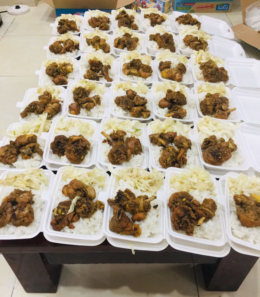 Hnay bếp nhà Dạ Hương nấu 53 phần ( phát sinh 3 phần trong khu cách li)