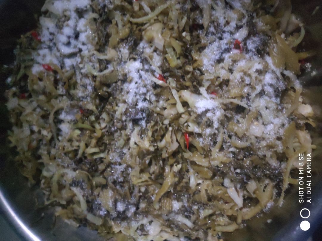 2:cải chua trộn với đường tỏi ớt.