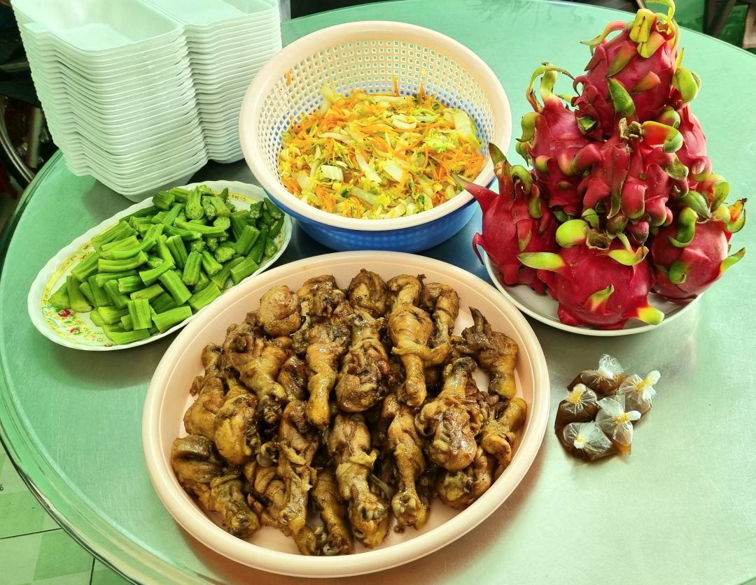 Bếp nhà yêu thương lathuvang hôm nay: 30 suất với các món: Đùi gà rôti, cải thảo cà rốt xào tỏi, đậu bắp luộc, 1 hộp sữa đậu nành Fami.