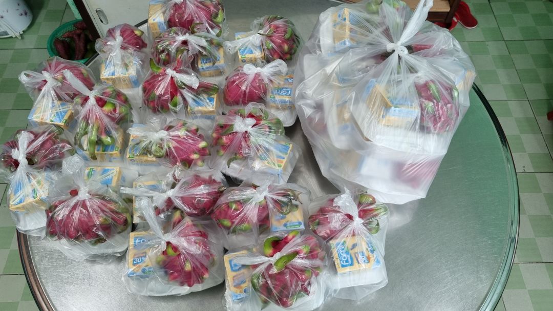 Đồng nghiệp Hữu Công tặng thêm mỗi suất 1 trái thanh long ruột đỏ.