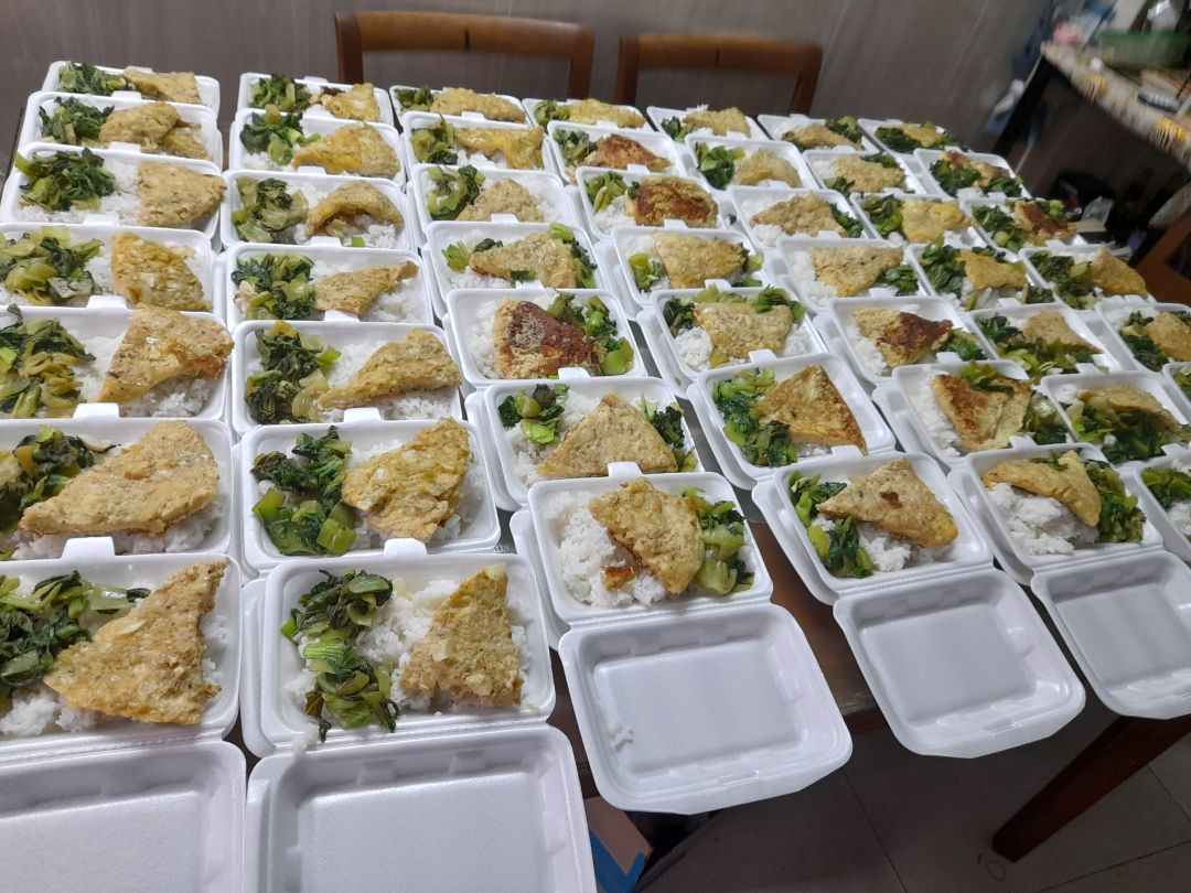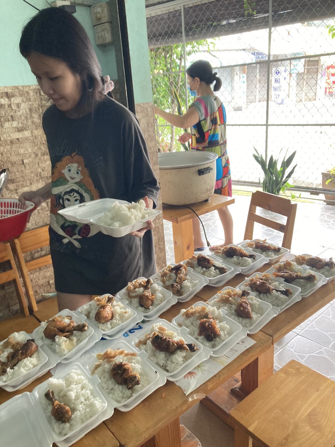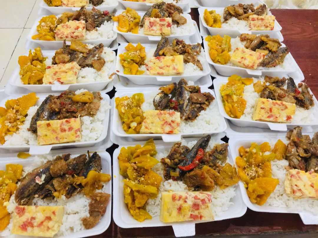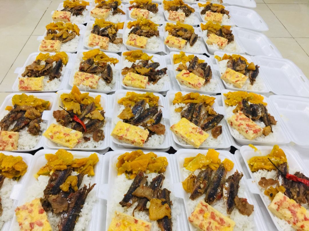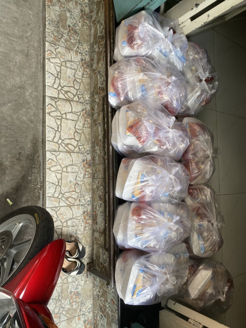 Chiều nấu 160 phần cơm, thực đơn gồm: thịt gà kho sả ớt, cá khô rim chiên mắm tỏi ớt, canh mồng tơi nấm, nấm xào hành tây+ cà rốt+ mũi heo; sữa Fami+ chanh đến bà con phòng trọ khó khăn ở khu phong toả và cách ly!