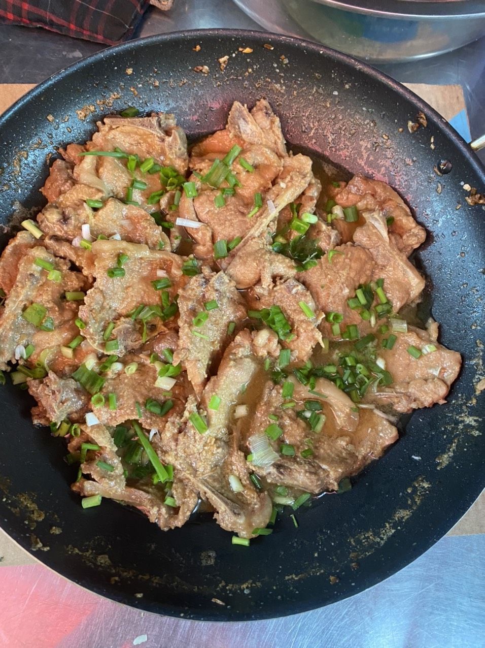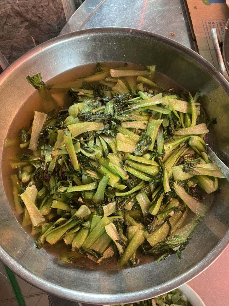 Bếp nhà Sonnynhan, hôm nay nấu 60 phần cơm, thực đơn gồm : cải thìa xào, canh súp sườn, thịt cốt lếch ram mặn, sữa Fami.