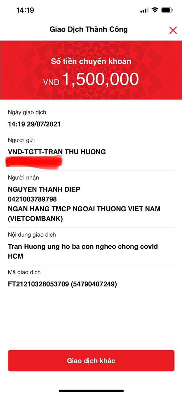 Bạn Trần Hương xin đc gửi một chút ủng hộ chương trình Bếp nhà. Chúc các đầu bếp và các shipper bình an và mạnh khỏe nhé