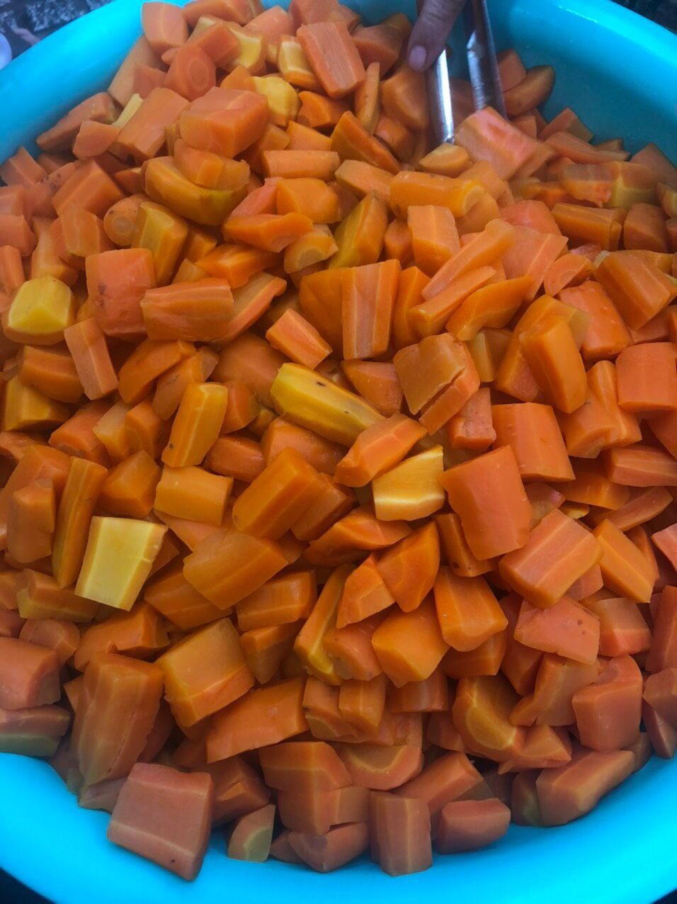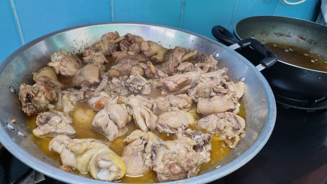 Bếp nhà sonnynhan 4/8 nấu 60 phần cơm chiều. Thực đơn : Gà kho gừng, canh bí sườn, dưa leo xào, sữa Fami.