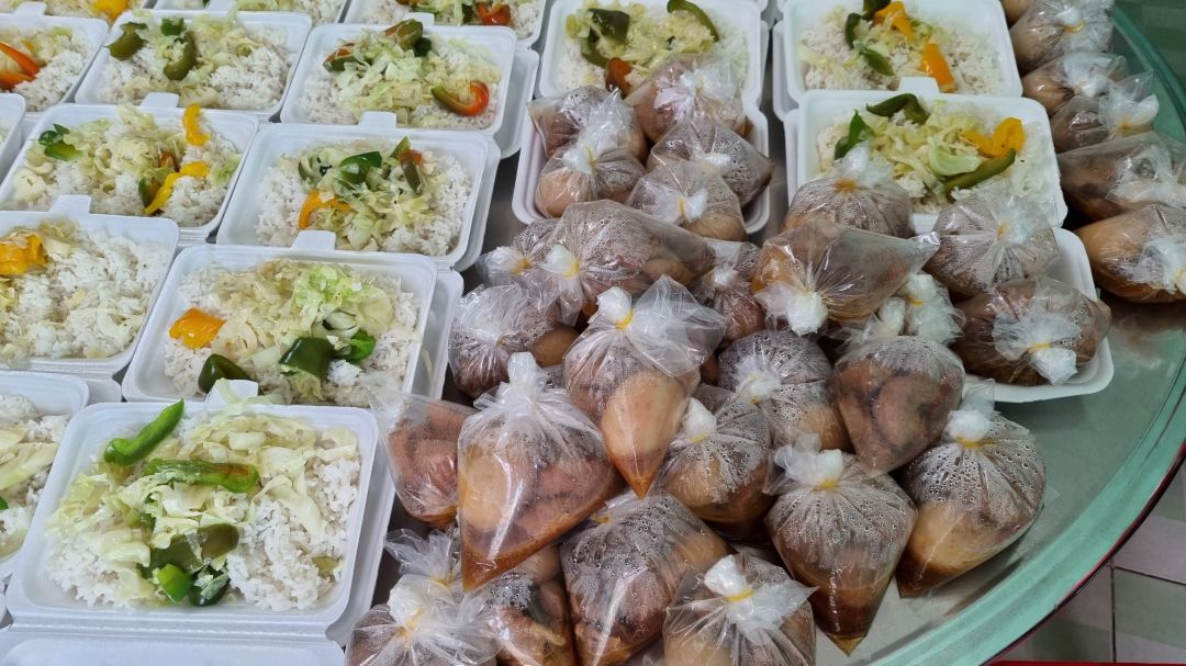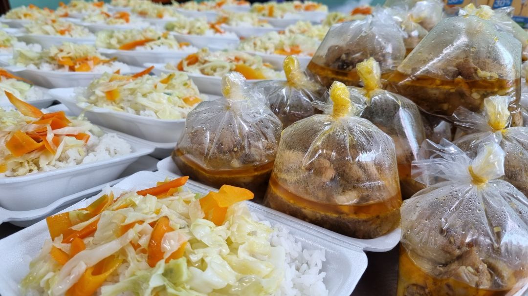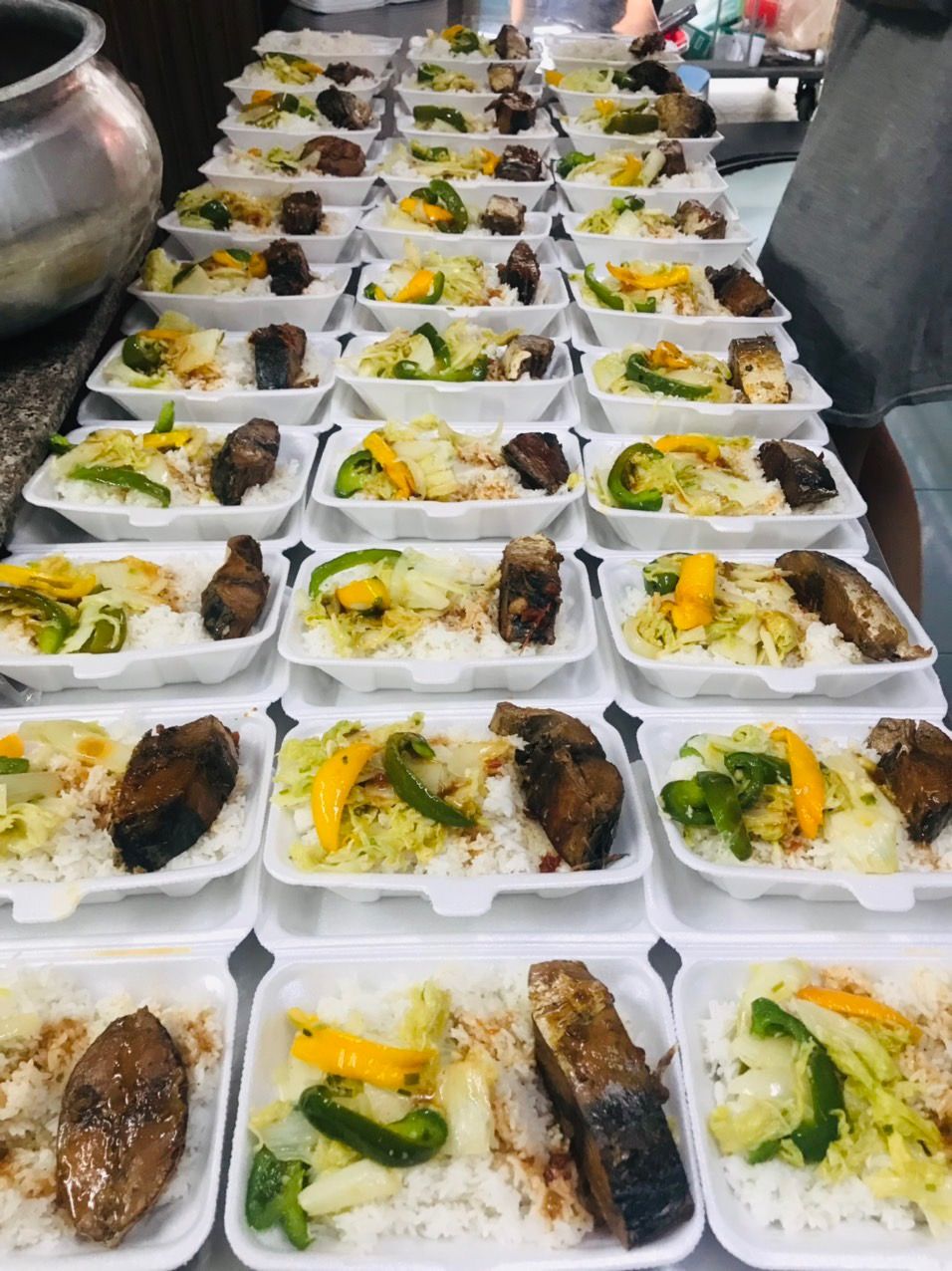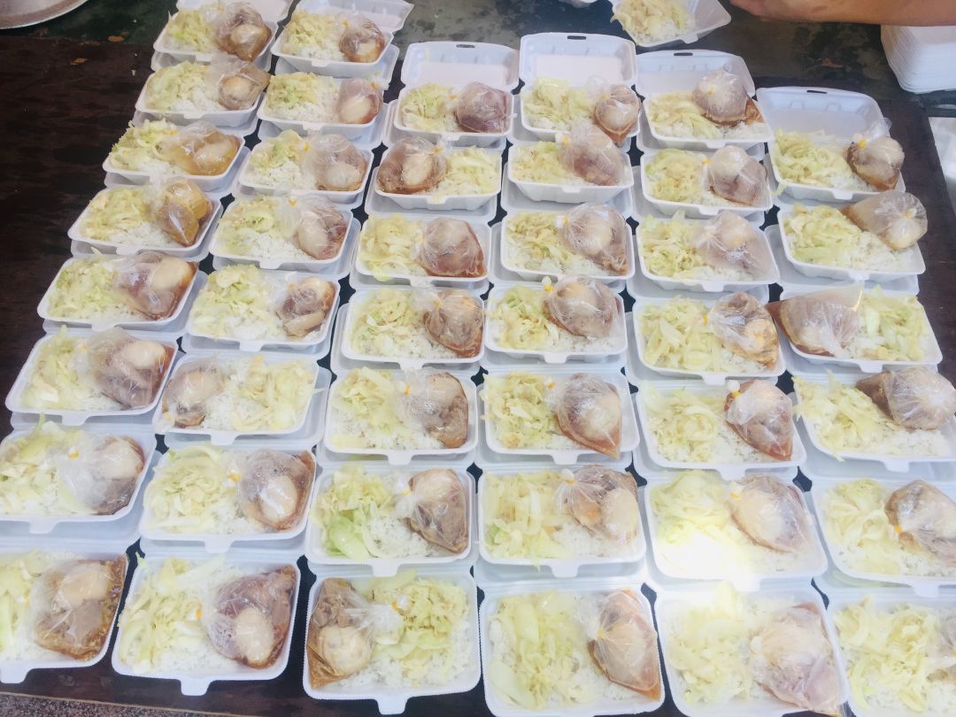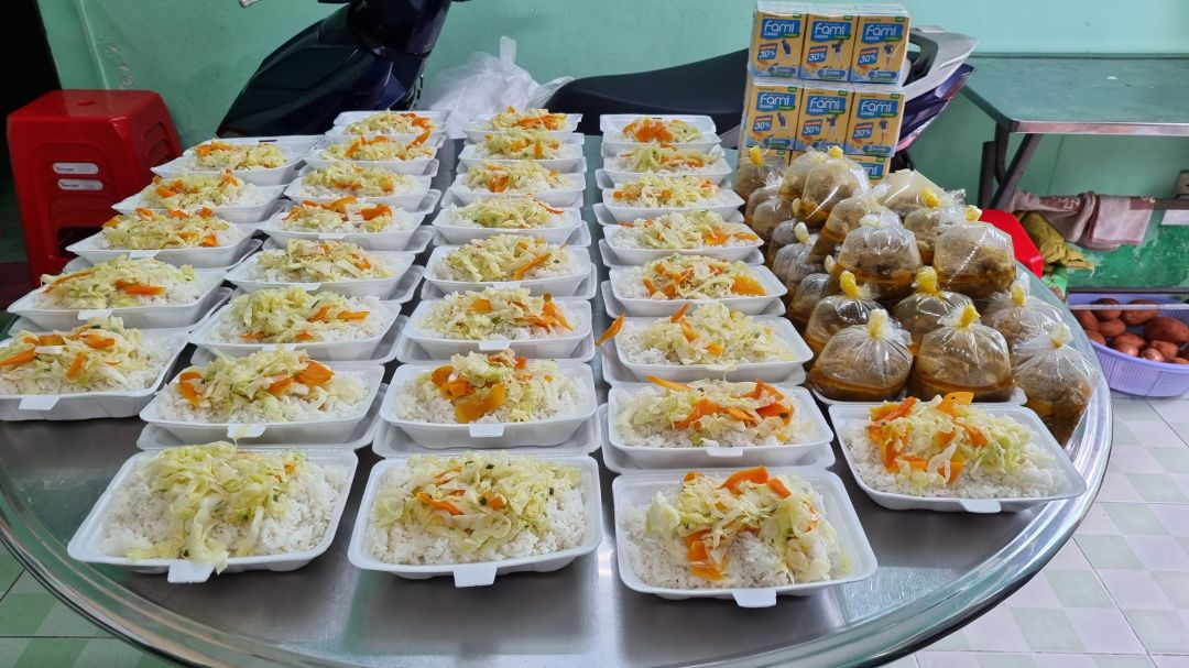 Chiều nấu 150 phần cơm thịt heo kho trứng vịt; canh bắp cải thảo sườn que và sữa Fami.