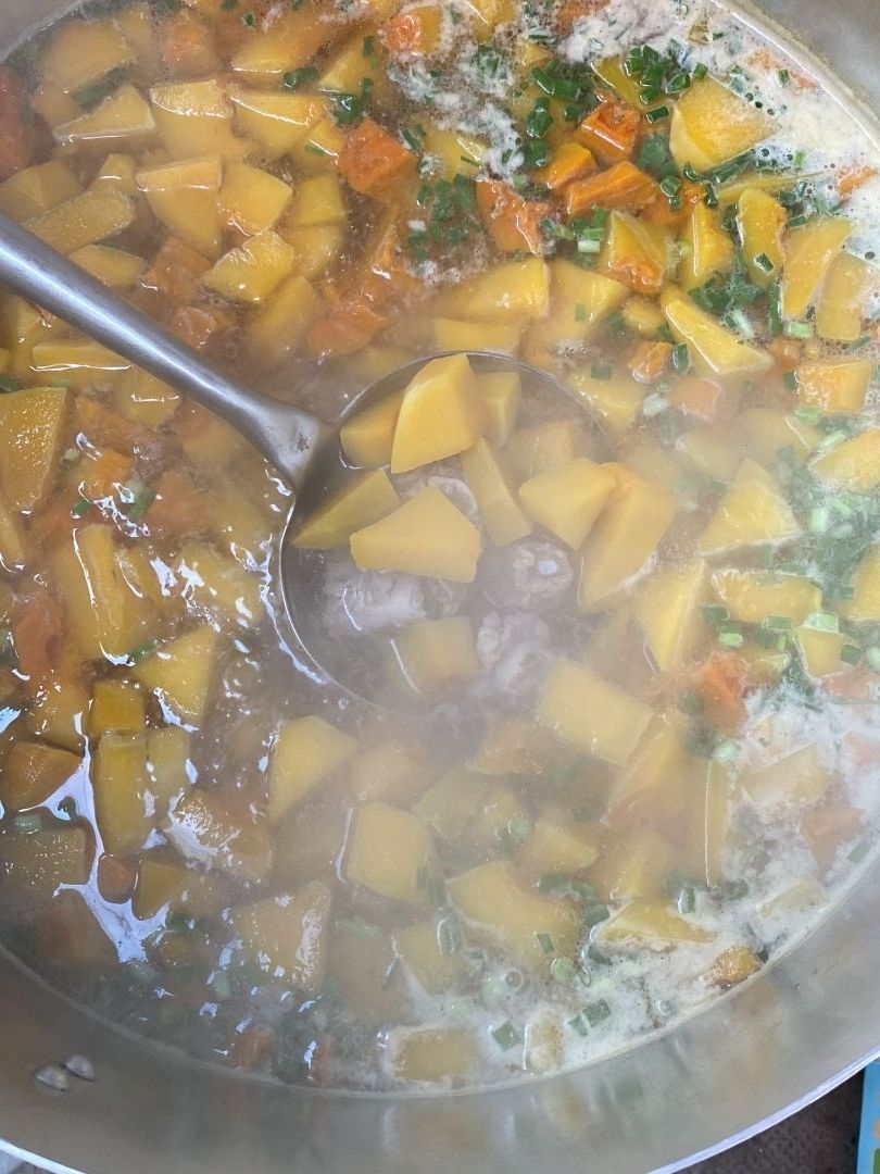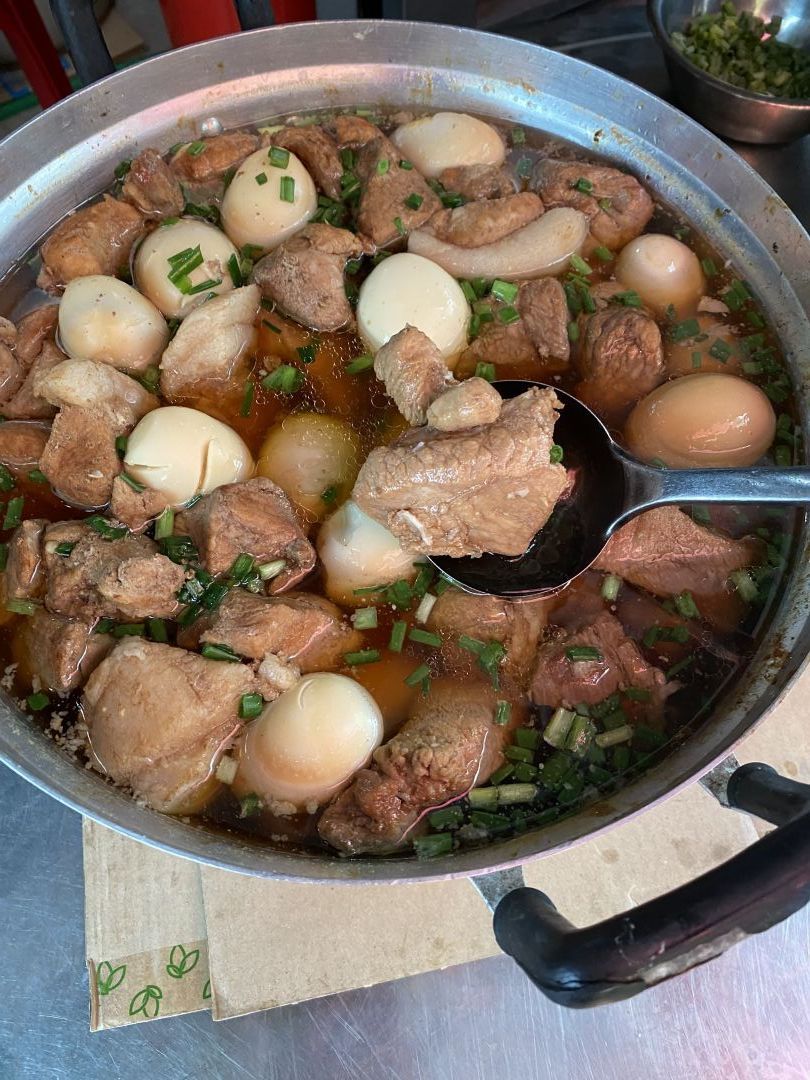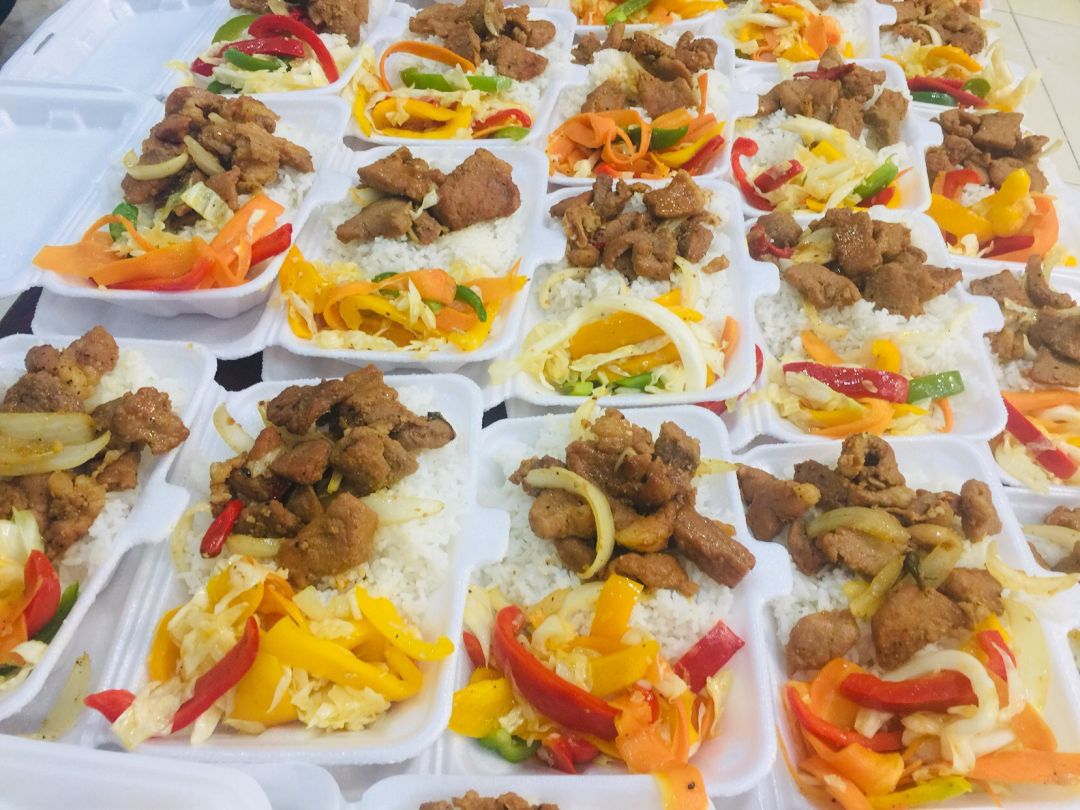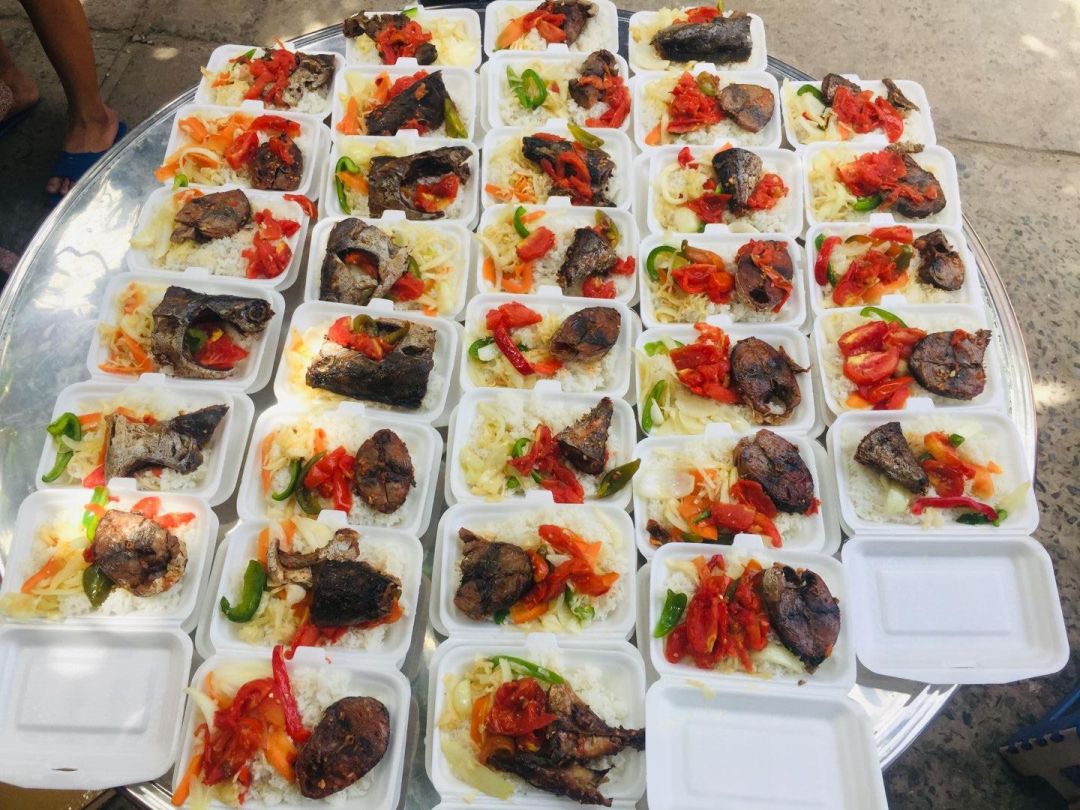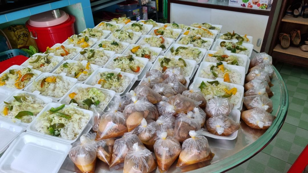 Chiều nấu 150 phần cơm thịt heo kho trứng vịt; canh bắp cải thảo sườn que và sữa Fami.