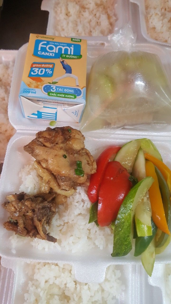 Bếp nhà yêu thương của Lathuvang hôm nay: 32 suất với thực đơn Gà kho cary sả. Bắp cải cà rốt xào tỏi. 1 hộp sữa đậu nành Fami.