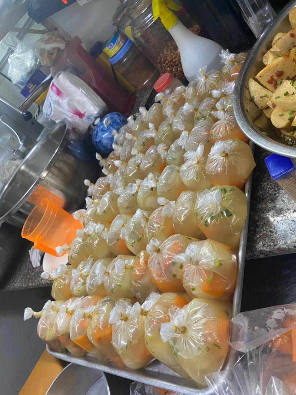 Hôm nay bếp có dư 6 phần thịt kho nên vào bịch phát thêm cho những hộ khó khăn nhất.