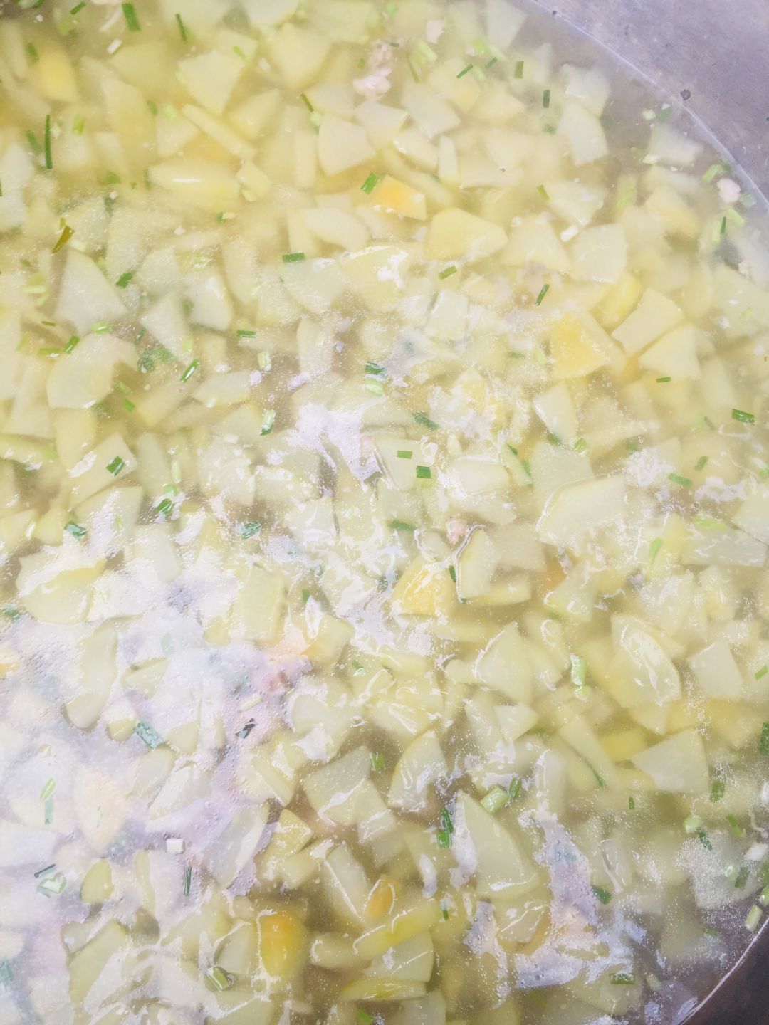 7/8, bếp nhà sonnynhan nấu 60 phần cơm, thực đơn : khô cá cơm chiên nước mắm, rau muống xào, canh bắp cải với sườn, sữa Fami, chuối.