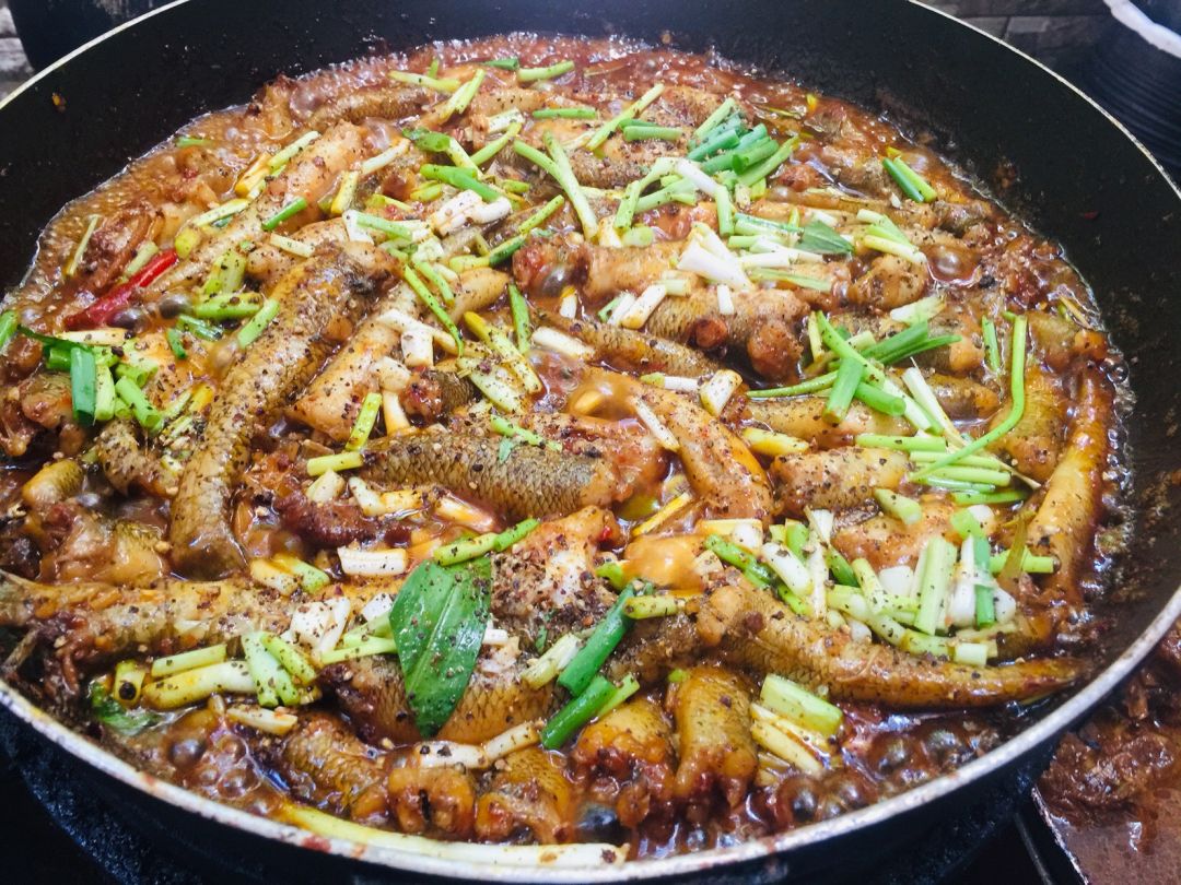 Tôm càng xanh rim bơ tỏi+ cá bống kho tiêu