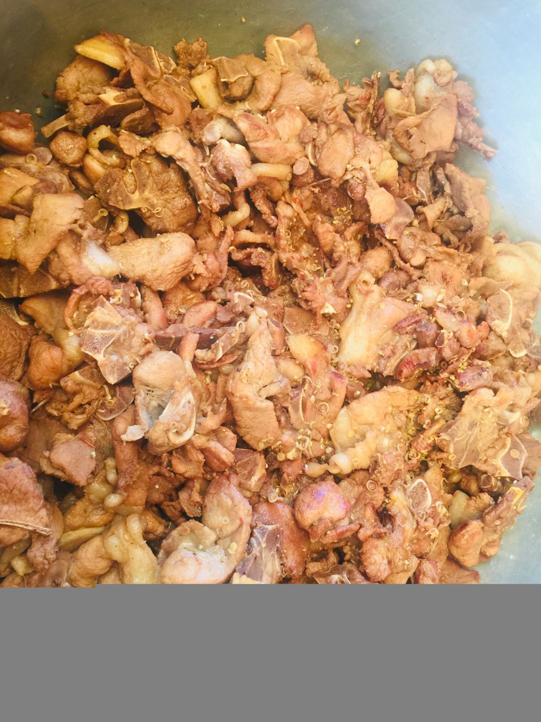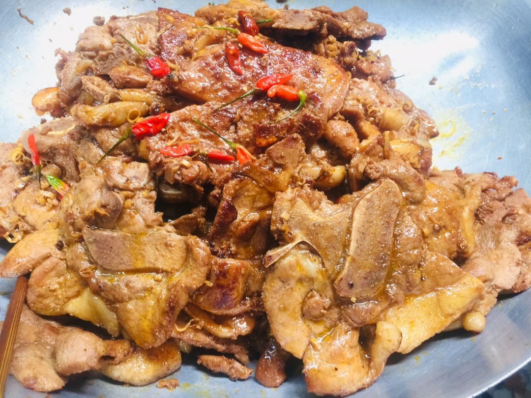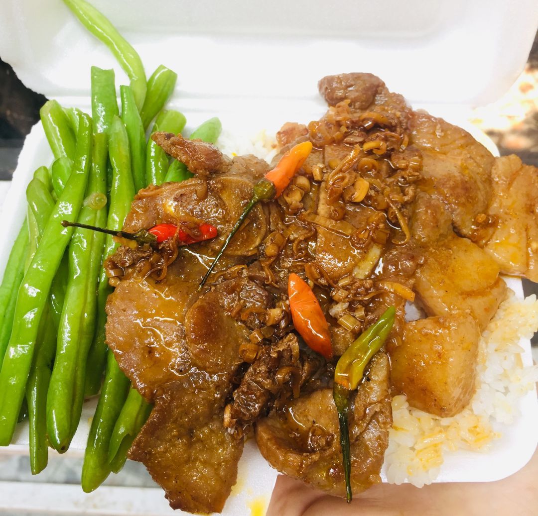 Trong 500 phần cơm bếp Thảo nấu cho dã chiến 8 hôm nay có cơm thịt kho khô, cơm thịt gà và một số ít là cơm mực xào. Canh hôm nay là canh bí mà bếp quên chụp hình. Nguyên liệu được hỗ trợ từ những nhà hảo tâm của chương trình Bếp Yêu Thương và anh Tman cùng những người bạn.