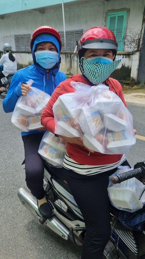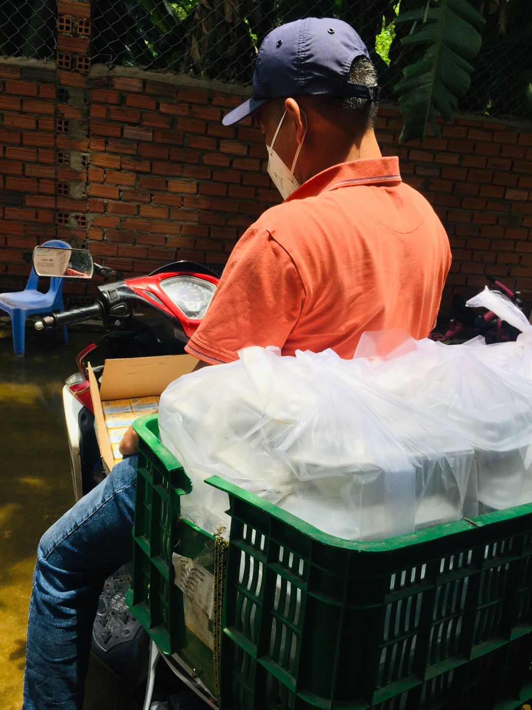 Cách thức giao :Nấu xong những người đại dien có trong danh sách đến nhận cơm và chuyển dùm để phát cho bà con khó khăn và khu vực cách ly