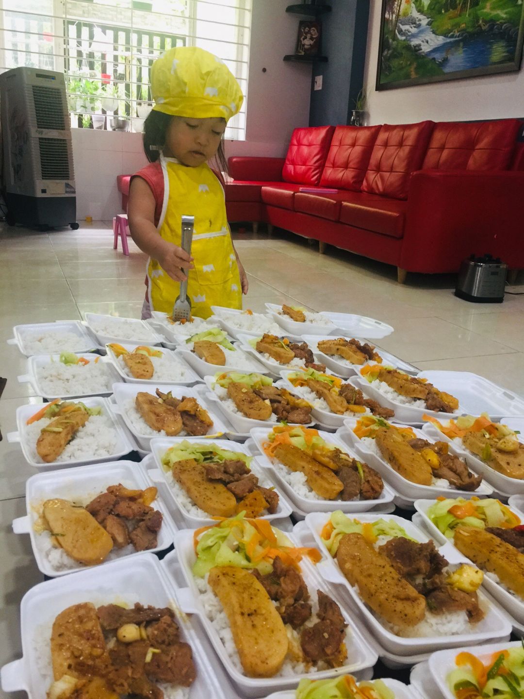 Cách thức chuyển cơm đến cho mọi người đi bộ (vì khu trọ cùng hẻm)