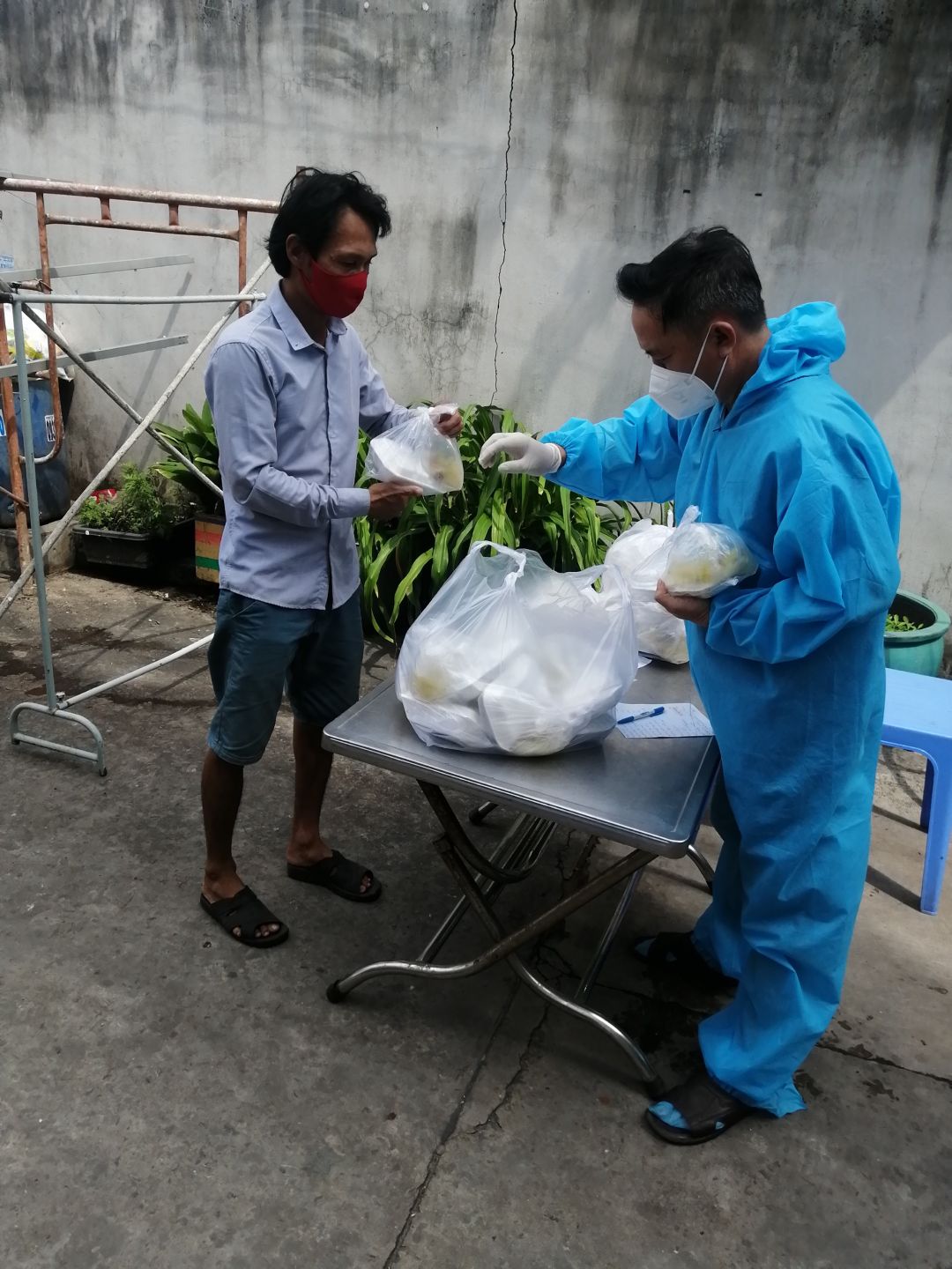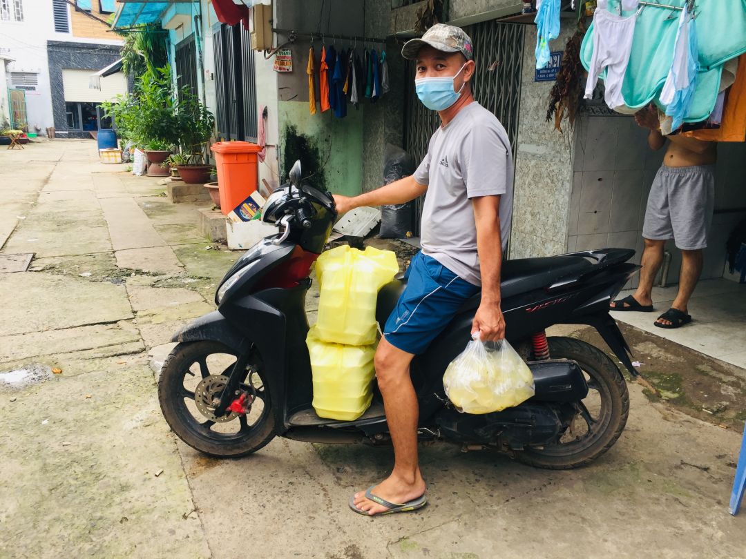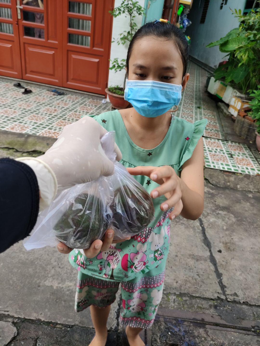 Hôm qua (2/09/2021), bếp nhà An có nhận 300kg bơ+ 200kg khoai lang từ anh Tú( Bếp nhà yêu thương) và hơn 200kg rau tươi từ 1 mạnh thường quân giấu tên. Ngày hôm nay đã cùng công an khu vực đem phân phát rau củ quả cho 439 hộ khu cách ly và f0 trong khu phố cho dù trời tối mưa tầm tã.
