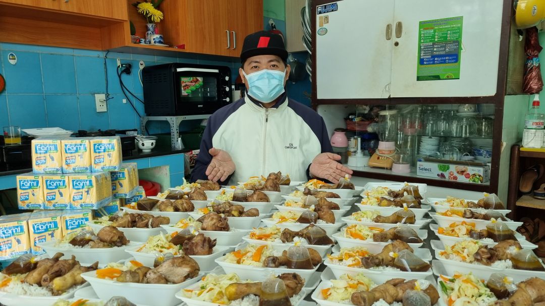 - Chiều : 63 phần bánh mì cà ri gà. Tặng 60kg bơ cho các y bác sĩ và các anh em chốt trực, 10kg tặng chia cho các anh chị trong bếp nấu.