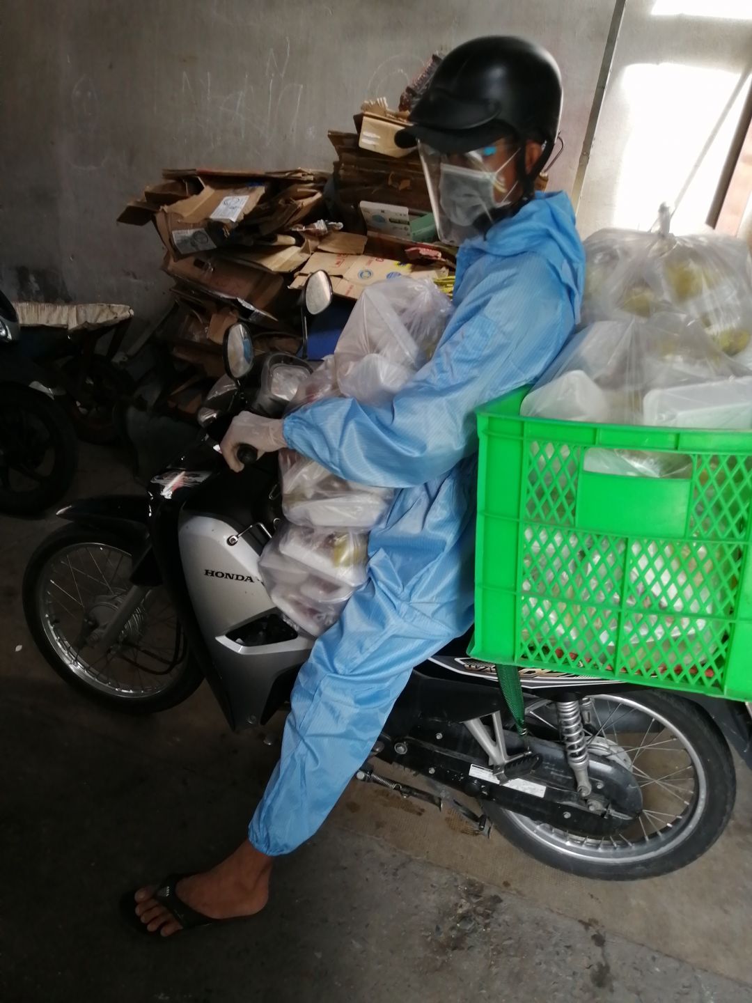 E Minh Thư chung cư Green Valley tặng 180 kg rau. Bếp dùng 1 phần còn lại chia cho bà con trong các xóm trọ của q7 đang bị phong toả