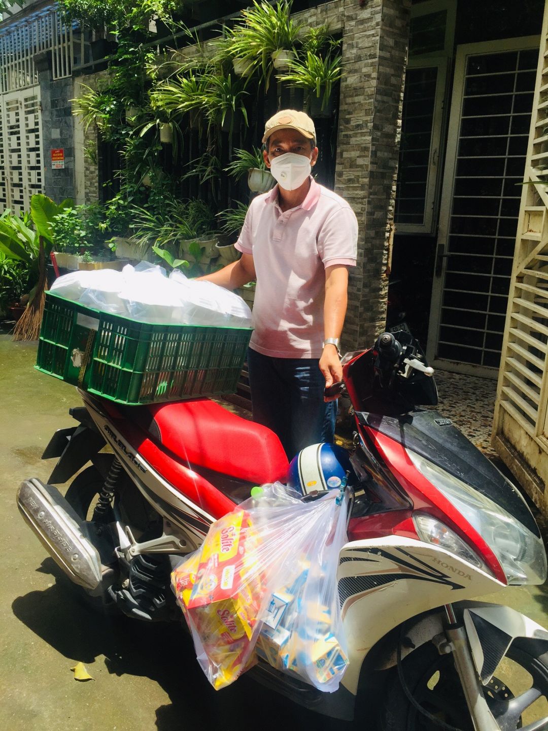 Hôm nay bếp nhà :Ngọc nhận được 10 hộp khẩu trang và 500k hổ trợ cần thiết khi đỏ bếp.. Khẩu trang Hương phát cho bà con nấu ăn, con tiền 500k Hương chi vào đổi  bình ga....
