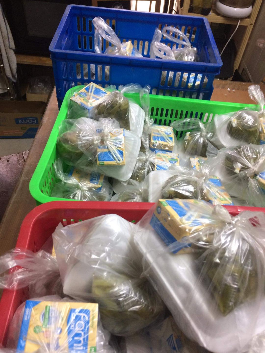 Trưa : 60 phần mì xào, sữa Fami