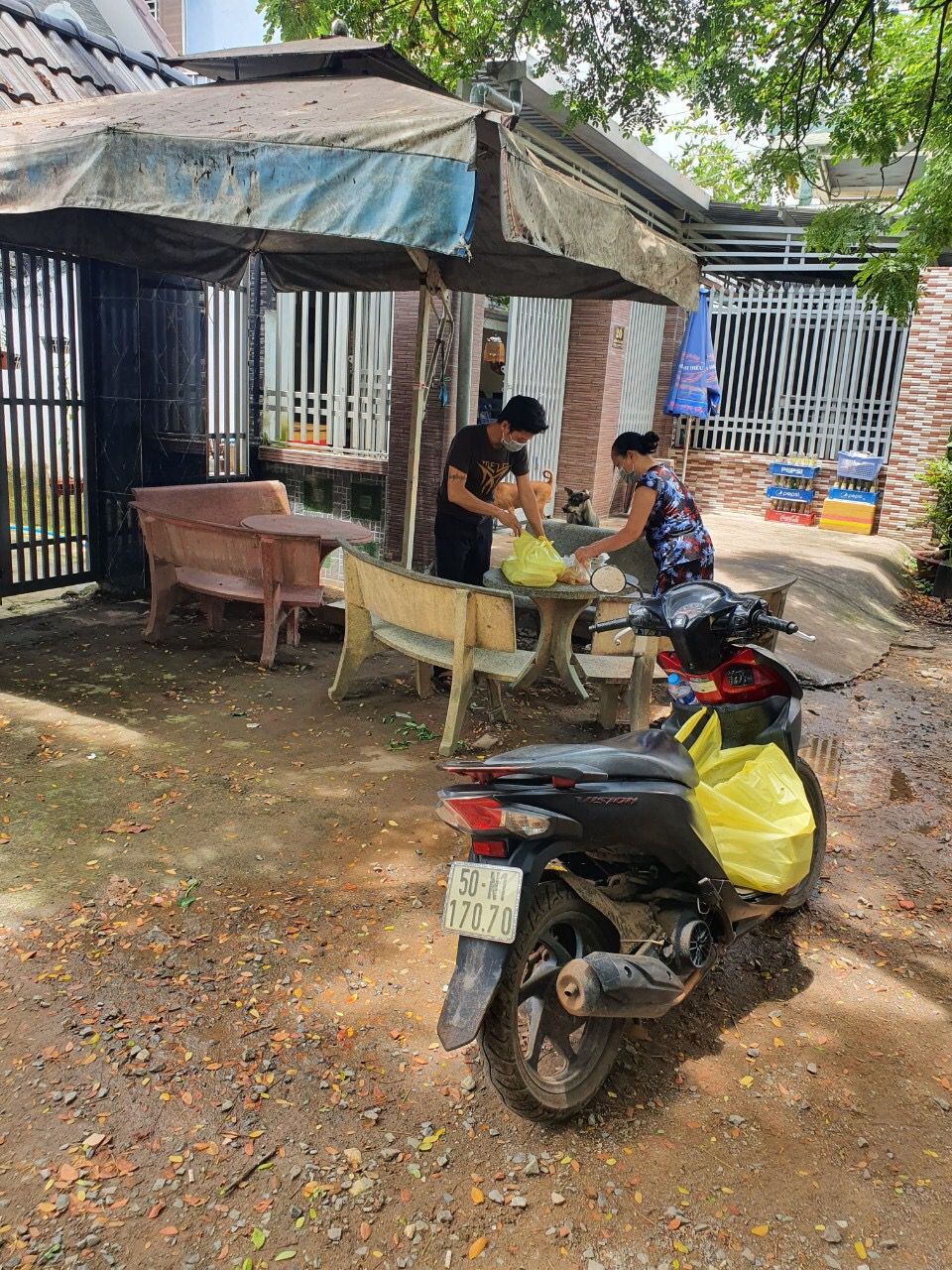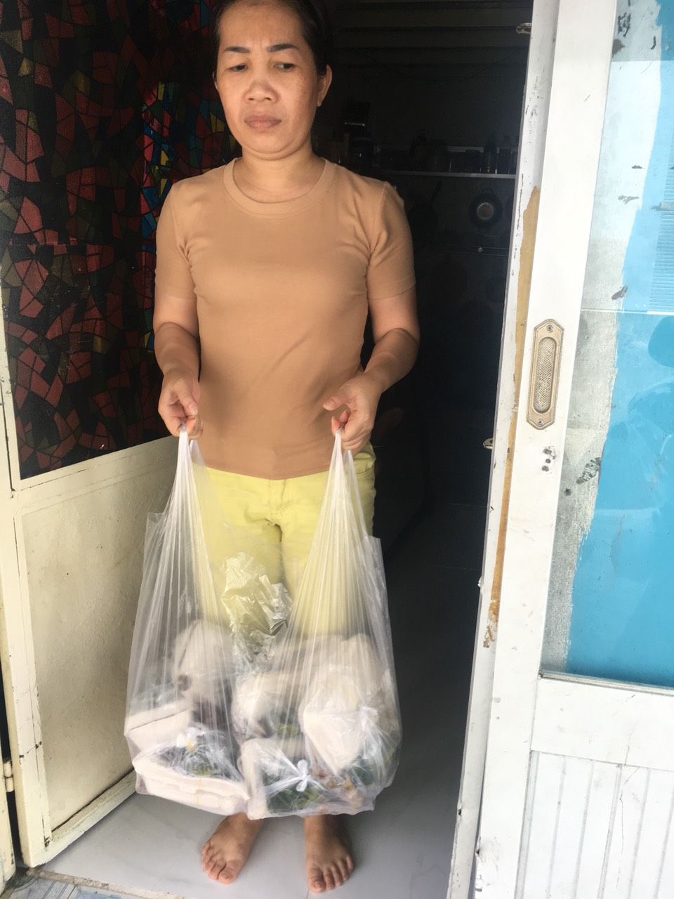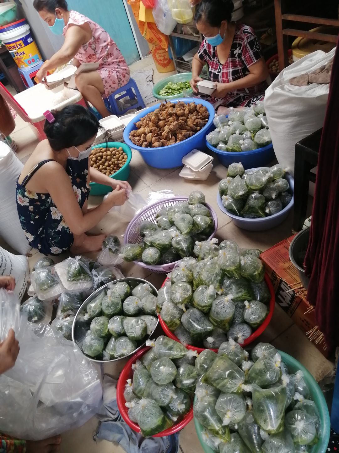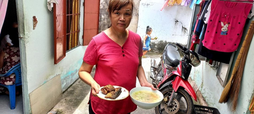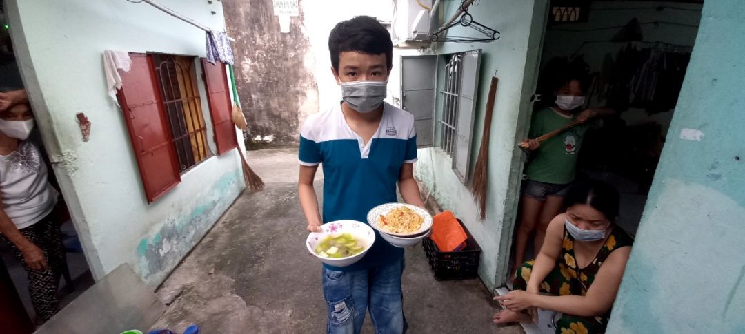 Sáng nấu 240 phần cơm chả cá chiên sốt cà chua và hành tây; bắp cải xào; canh bí đỏ+ sườn que. Nay thêm tráng miệng là ổi hoặc nhãn hoặc bánh solite cho các hộ cách ly và khó khăn