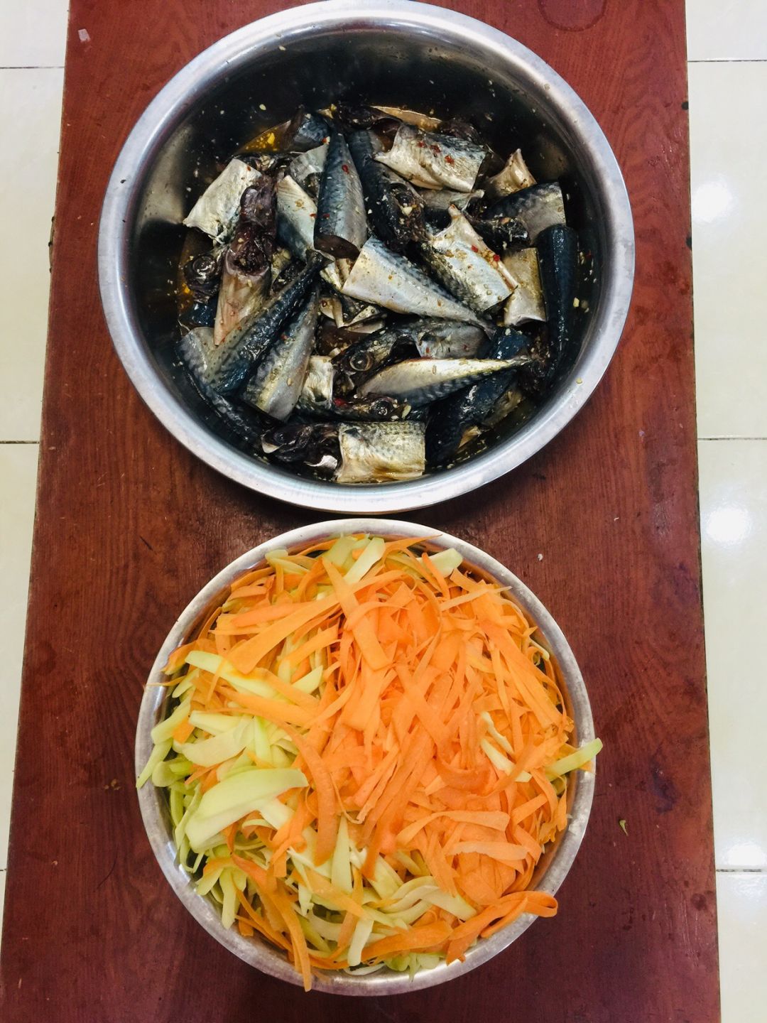 Chiều nấu 260 phần cơm chả cá chiên sốt cà chua và hành tây; bắp cải xào; canh bí đỏ+ sườn que. Nay thêm tráng miệng là ổi hoặc nhãn hoặc bánh solite cho các hộ cách ly và khó khăn.