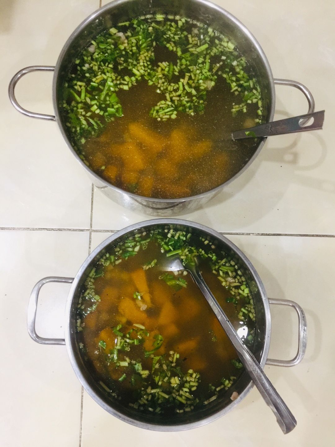 Chiều nấu 260 phần cơm chả cá chiên sốt cà chua và hành tây; bắp cải xào; canh bí đỏ+ sườn que. Nay thêm tráng miệng là ổi hoặc nhãn hoặc bánh solite cho các hộ cách ly và khó khăn.