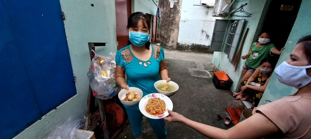 Sáng nấu 240 phần cơm chả cá chiên sốt cà chua và hành tây; bắp cải xào; canh bí đỏ+ sườn que. Nay thêm tráng miệng là ổi hoặc nhãn hoặc bánh solite cho các hộ cách ly và khó khăn