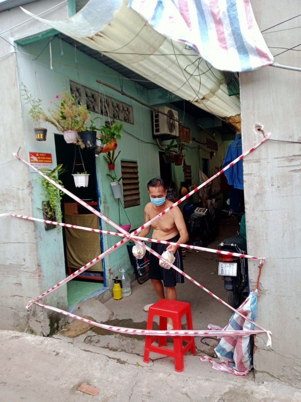 100 phần cơm cho các chiến sĩ công an tại địa bàn và bà con trong xóm trọ đang cách li thuộc phường Tân Phú q7