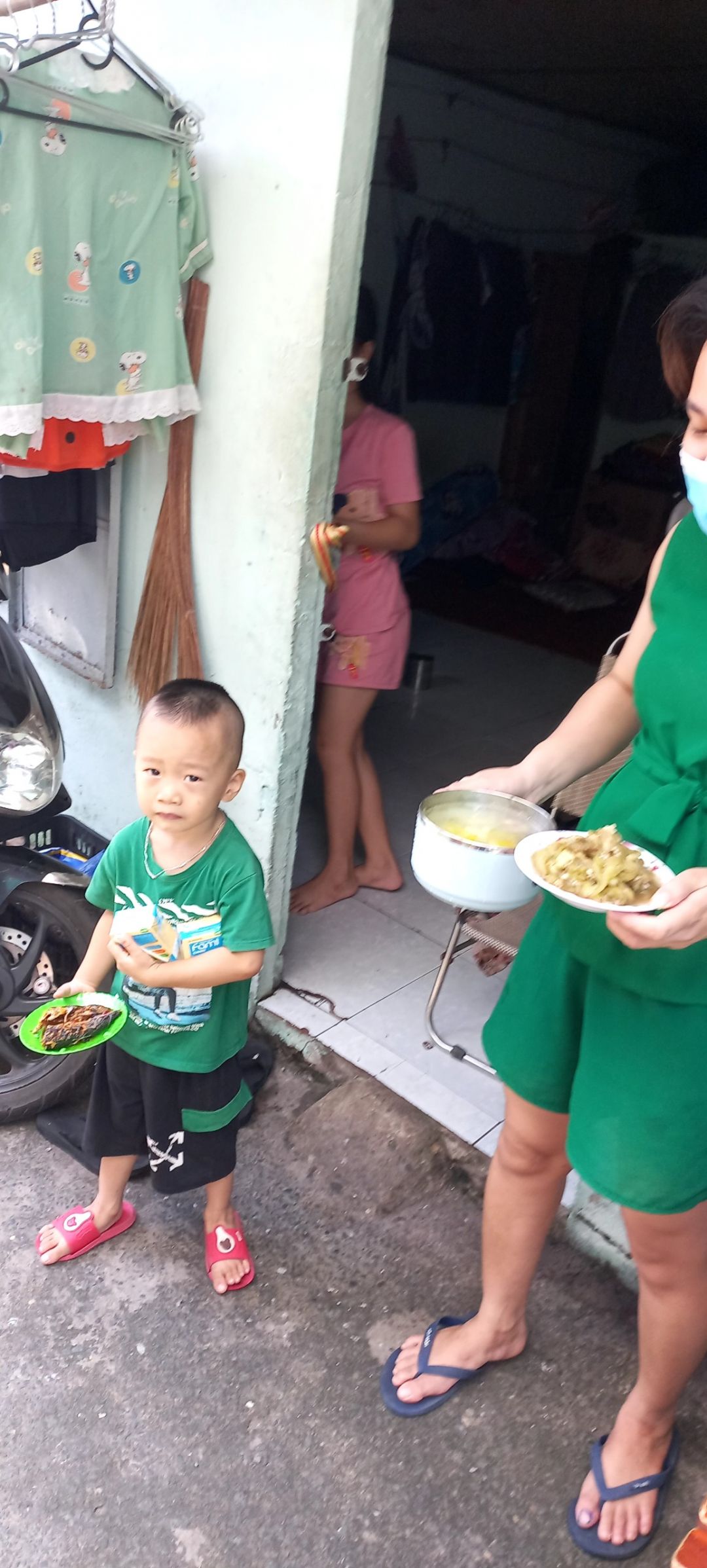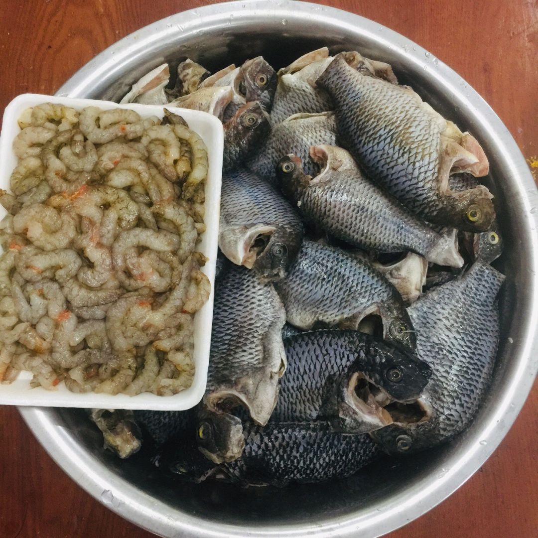 Hôm qua, nhận được thùng cá tôm 20 kí từ chị Phương-GV. Vừa lúc Lê Tuấn Tú báo đội xe phản ứng nhanh ngưng hỗ trợ nên bếp có nhờ anh Minh tt (người đi phát cơm cho bà con) xin ít rau. Khuya qua, Anh Minh nói để anh sắp xếp và sáng nay chuyển vào hỗ trợ cho Bếp 40 ký rau gồm rau muống, bí xanh, mướp, dưa leo, khoai lang và chanh. Tất cả đều xanh non, tươi rói. Với số nguyên liệu này và cá, trứng còn lại trong tủ, Bếp yên tâm chiến tới qua 15/9 mà khôbg phải lo vấn đề vận chuyển nguyên liệu nữa.