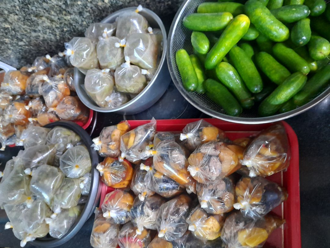 Chiều nấu 215 phần cơm gà kho sả ớt; ớt chuông+ bắp cải+ hành tây xào; canh bí đao+ sườn que và sữa Fami cho người già với trẻ em!