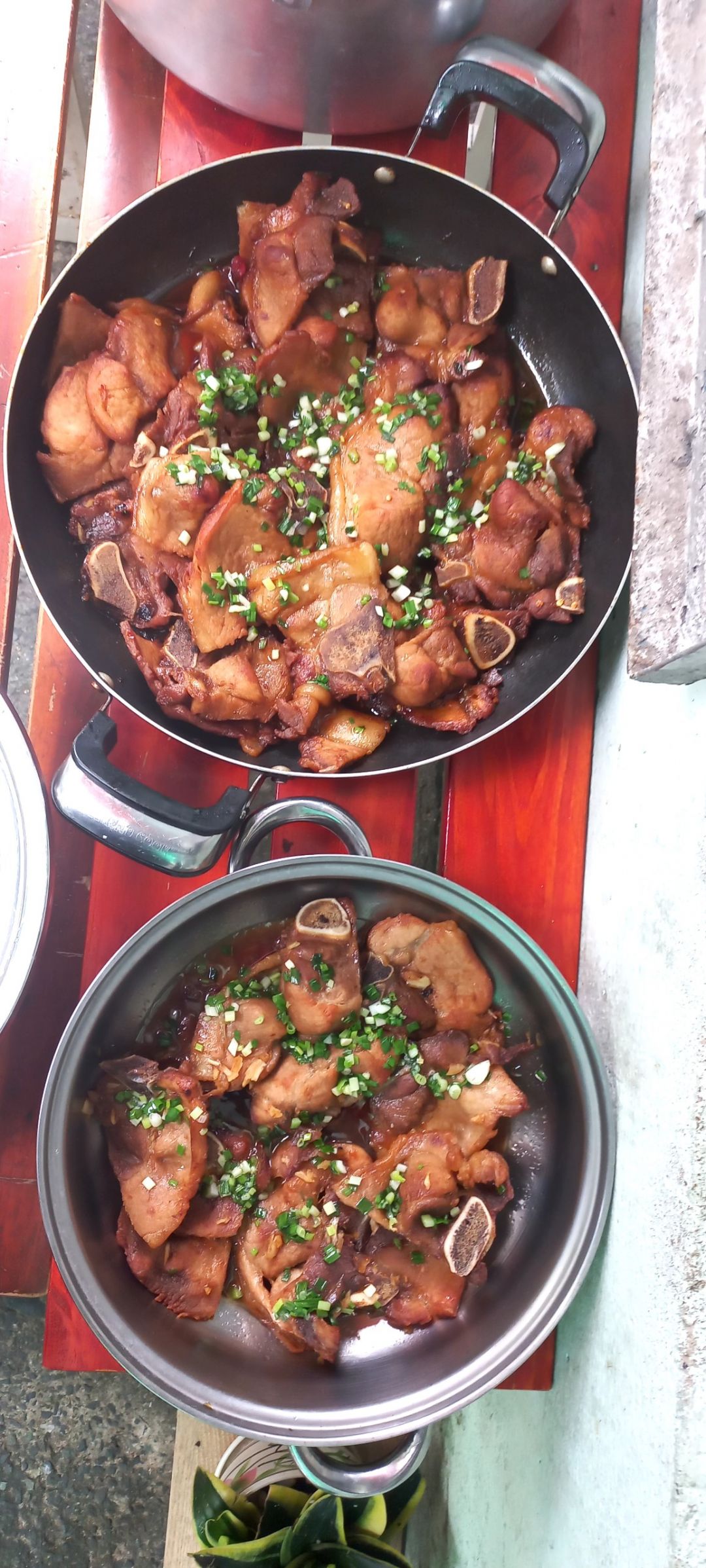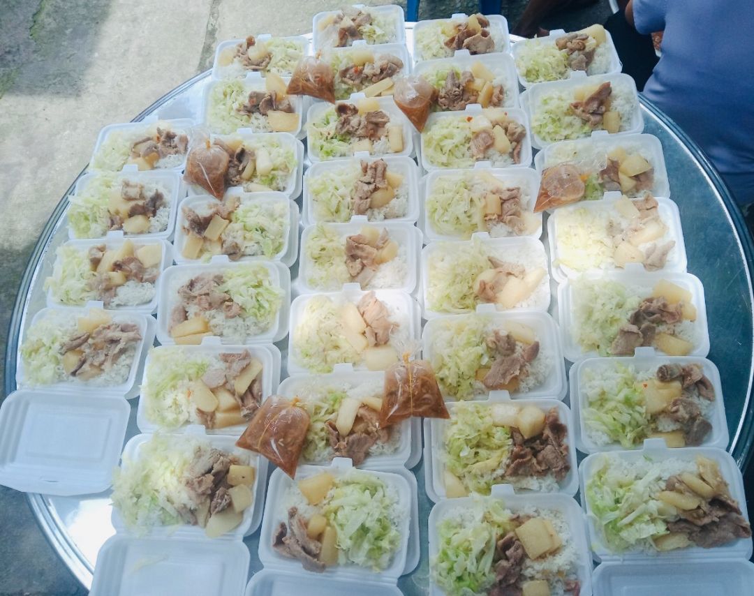 Chiều nấu 250 phần cơm thịt heo kho củ cải trắng; bắp cải xào; canh rau má+ sườn que.