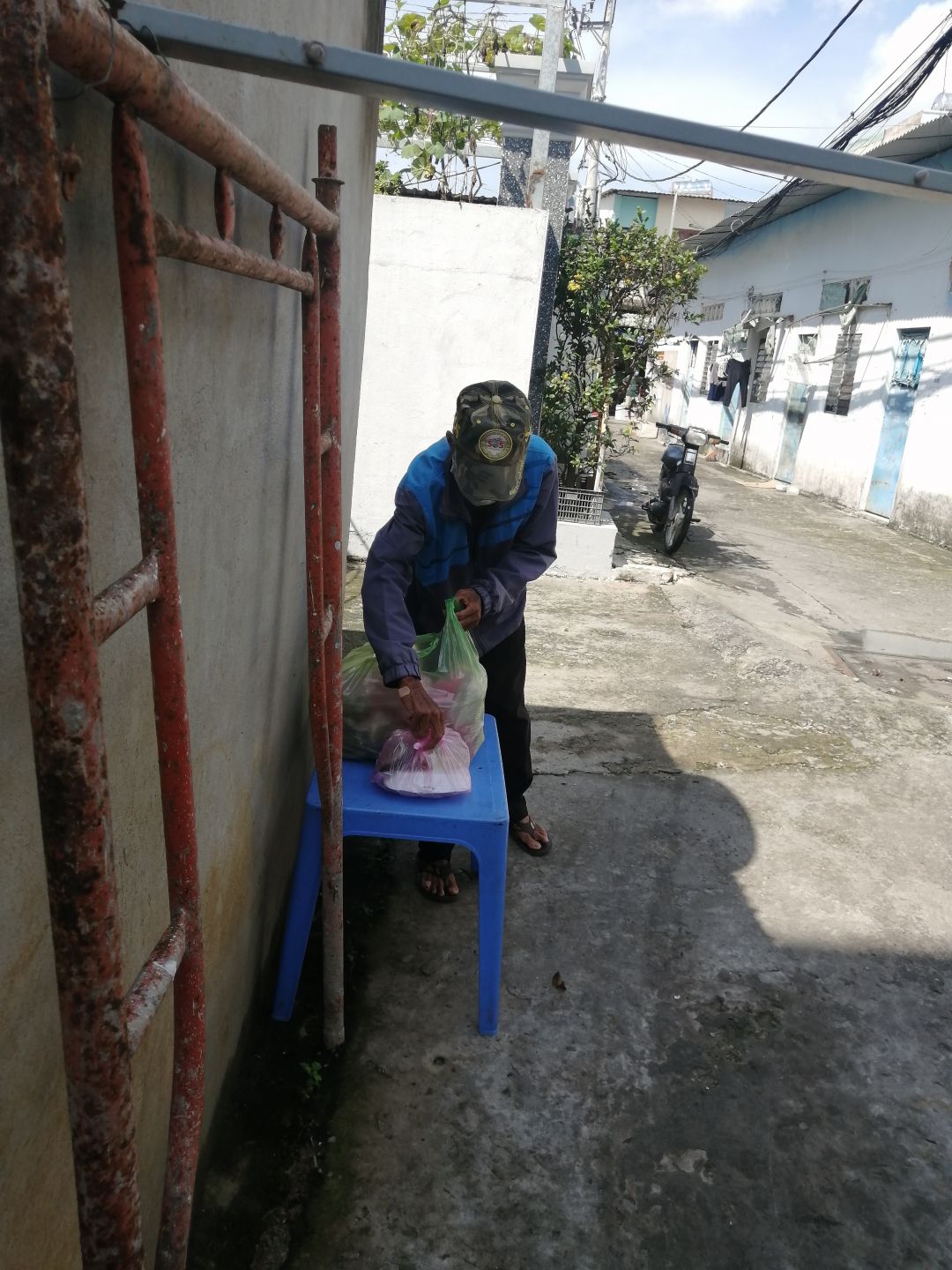 Bếp nhận thùng cam của bếp nhà yêu thương gởi phát thêm cam cho những người già... Với mong muốn bà con giữ gìn sức khỏe