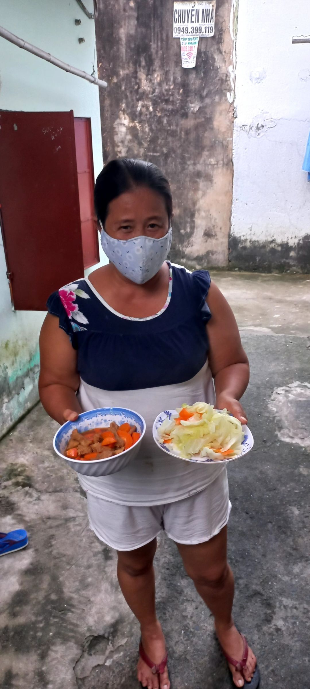 Bếp Thảo gửi đến Bệnh viện Dã chiến số 8 250 phần ăn với món chính là thịt kho củ cải và thịt gà xào dưa leo.