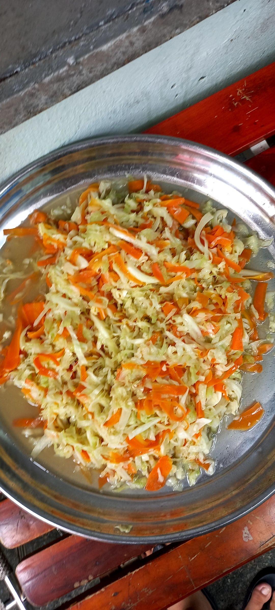Chiều nấu 275 phần cơm chả cá chiên sốt cà; rau muống xào tỏi; canh cải ngọt+ sườn que.