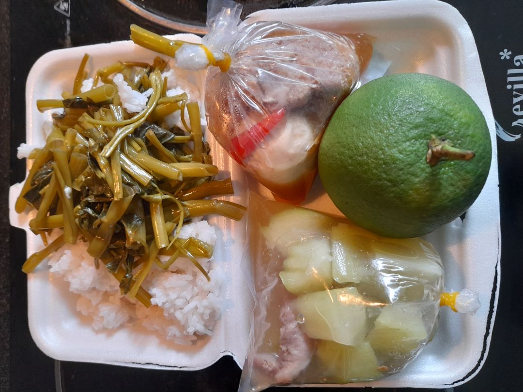 Sáng nấu 265 phần cơm thịt heo kho trứng; su su xào; canh bí đỏ+ sườn que.