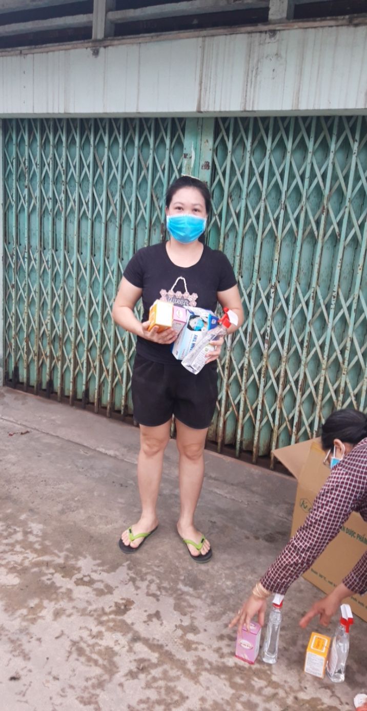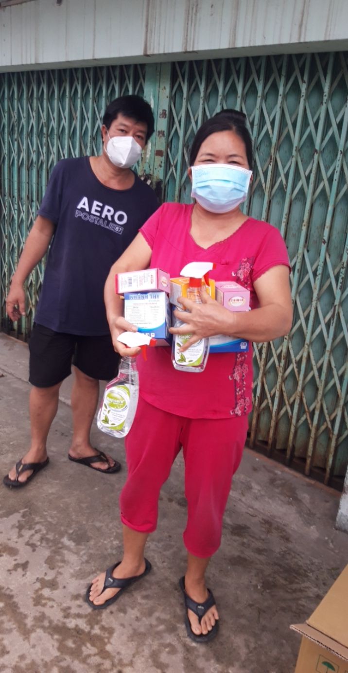 - 21 phần quà hỗ trợ mùa dịch (khẩu trang, dung dịch sát khuẩn, vitamin C, vitamin 3B)