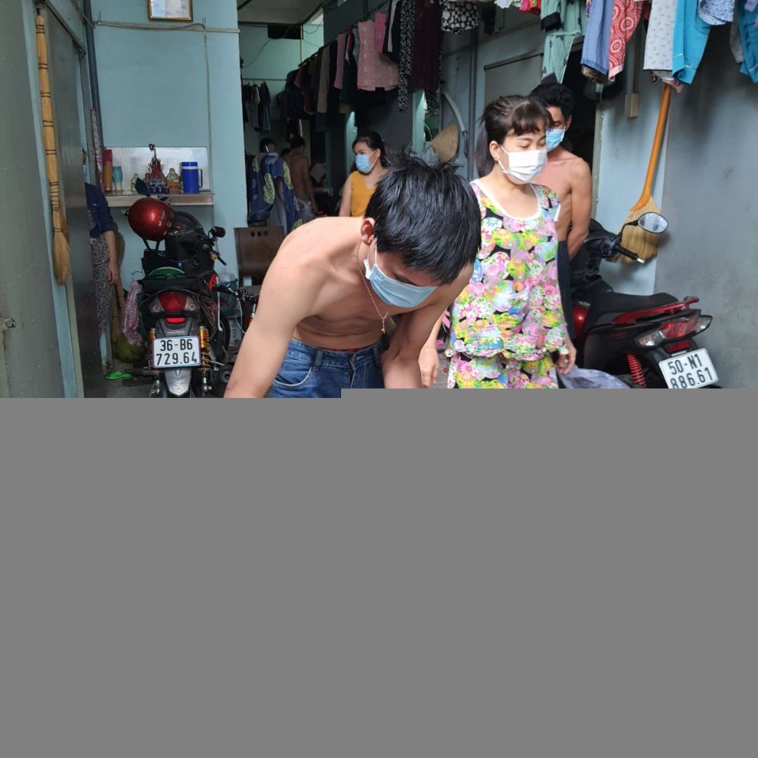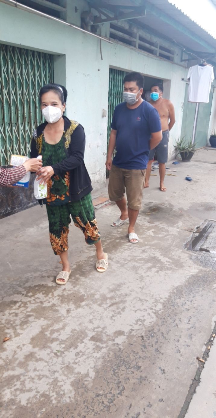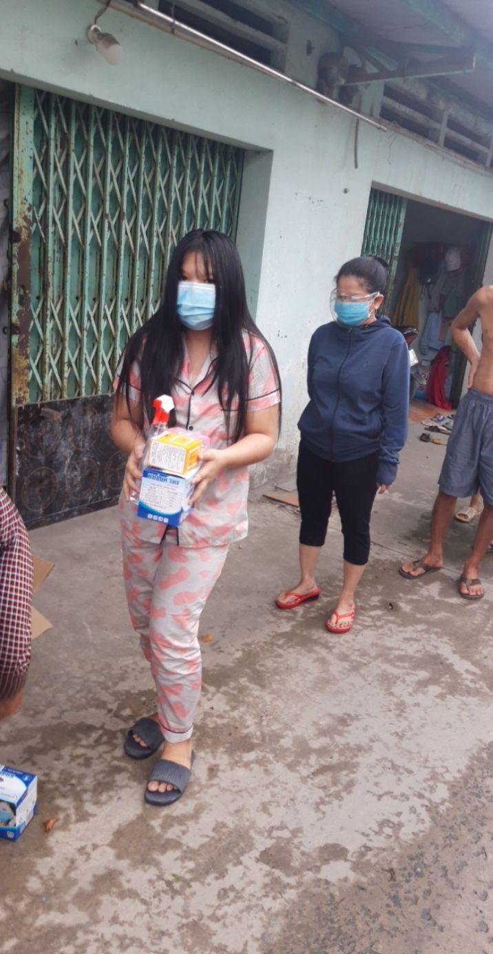 Dãy nhà trọ hiện đang bị phong tỏa do có 12/57 người bị nhiễm ( hiện tại những người còn lại 1 số đang có dấu hiệu ho sốt ạ ) . mọi người đang tự cách ly tại trọ do bên y tế bị quá tải nên không có người xuống test lại cho trọ cũng như đưa người bị đi cách ly ạ . Em xin được hỗ trợ thuốc và nước xịt khuẩn , khẩu trang và chanh cho 26 hộ ở đây ạ