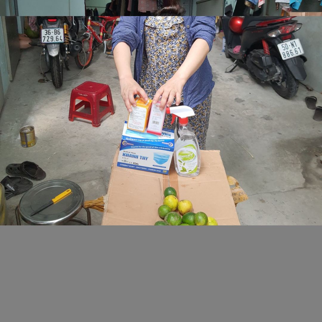 Em xin được hỗ trợ thuốc vitamin, khẩu trang , chanh , nước xịt khuẩn cho các hộ ạ