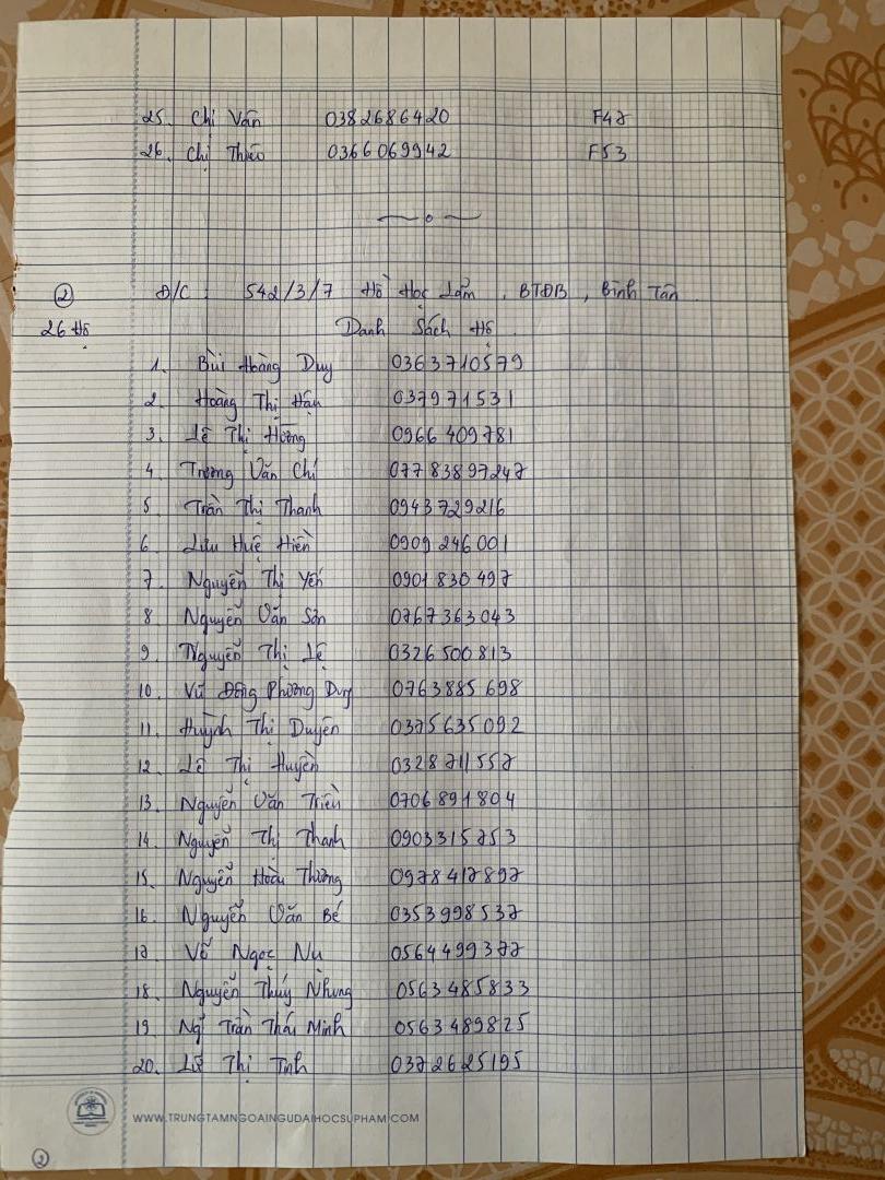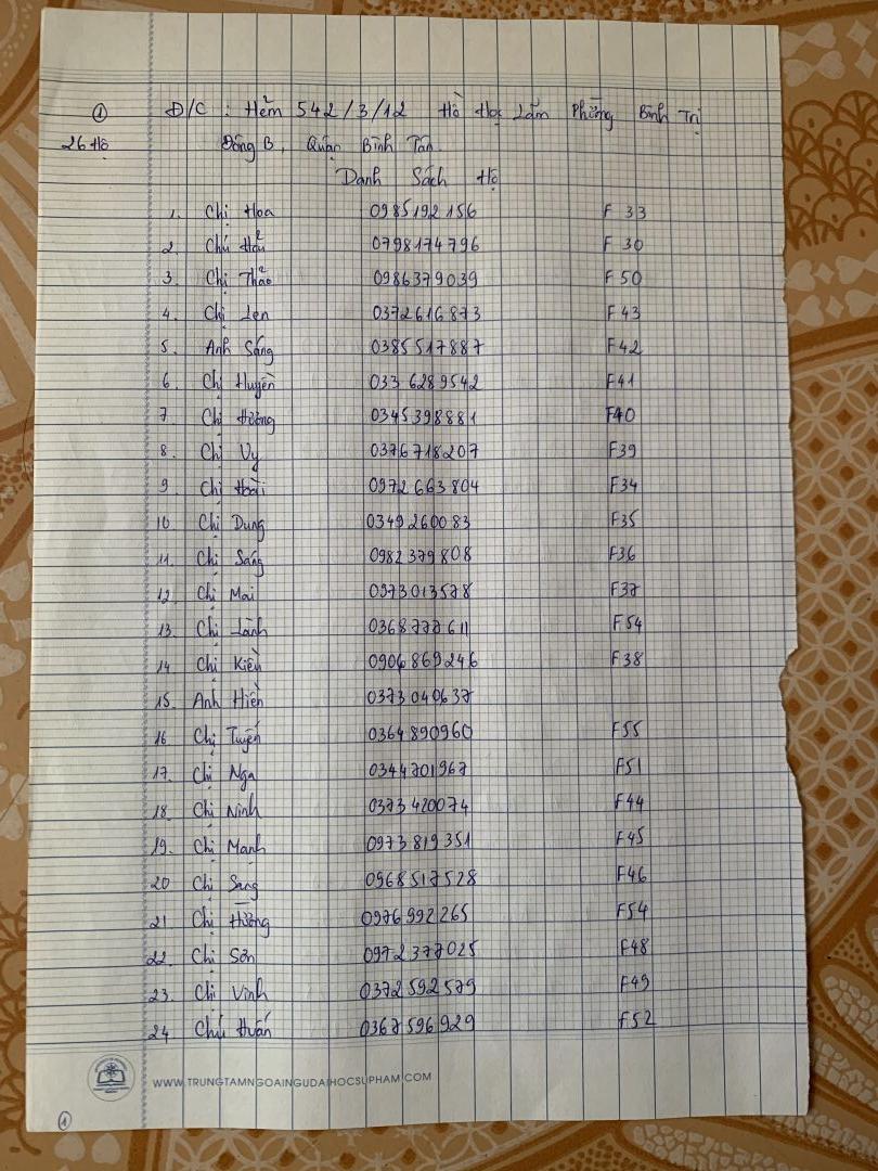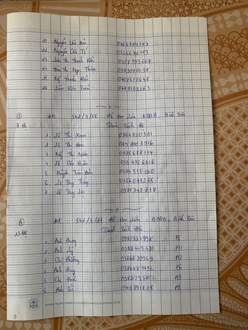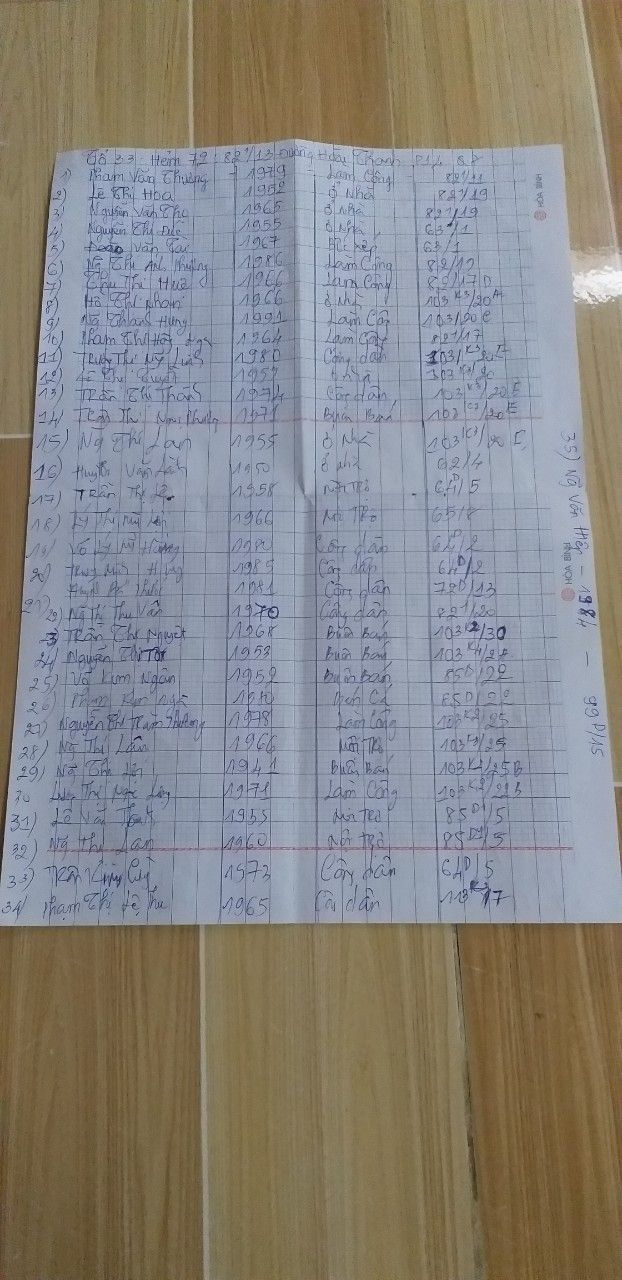 Anna Lê mới nhận được thông tin mới về số hộ vừa được phát hiện nghi nhiễm covid và khoanh vùng cách ly cả con hẻm 72 đường Hoài Thanh, quận 8 do các anh công an và tổ trưởng gửi nên Anna Lê xin đăng ký được hỗ trợ Vitamin C,  Vitamin 3B, dung dịch sát khuẩn, khẩu trang và chanh sả cho 100 hộ ở tổ 33, hẻm 72 đường Hoài Thanh, phường 14, quận 8. Em gửi kèm hình ảnh danh sách các hộ đã nêu trên do tổ trưởng khu phố gửi xin.
