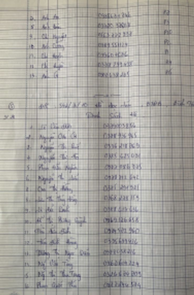 Tieuhuongduong xin gởi danh sách các thợ hồ đang ở trọ tại đường 1A, phường Long Thạnh Mỹ, thành phố Thủ Đức.