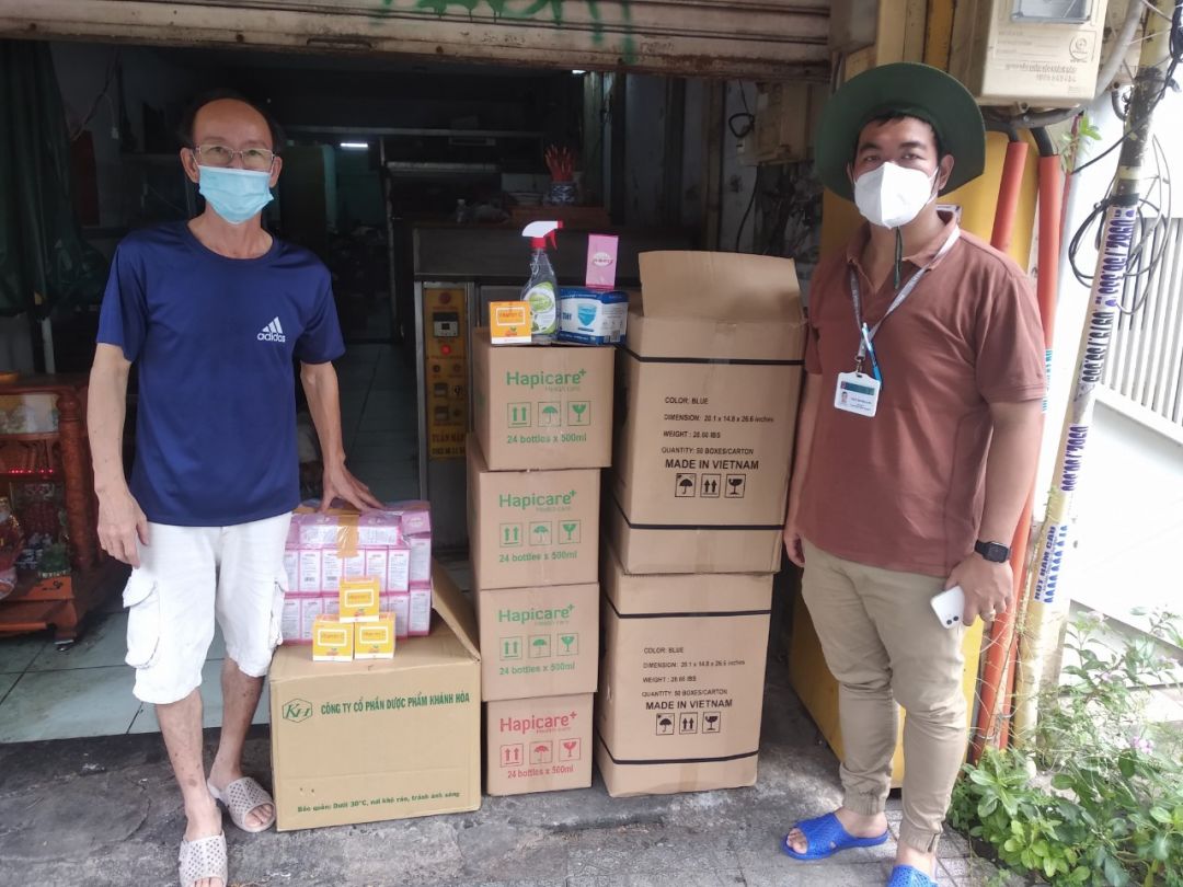 Hôm nay (15/08/2021), anh Thảo- hẻm 72 đường Hoài Thanh, phường 14, quận 8 đã nhận được hỗ trợ 100 phần Vitamin C, Vitamin B, dung dịch sát khuẩn, khẩu trang và chanh sả cho 100 hộ đang bị cách ly, khó khăn. Các anh công an khu vực, tổ trưởng và tổ phó đã đi trao tận tay cho các hộ ấy. Người dân rất vui mừng và gửi lời cảm ơn chân thành đến các mạnh thường quân hỗ trợ.