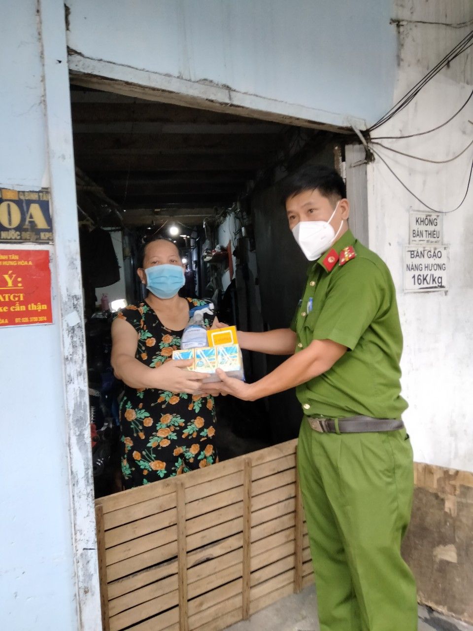 Hôm nay Anna Le đã nhận được hỗ trợ Vitamin C, Vitamin B, dung dịch sát khuẩn và khẩu trang cho 65 hộ khó khăn thuê trọ, các hộ đang bị cách ly tự điều trị tại nhà cũng như khu bếp. Các anh công an khu vực đã hỗ trợ Anna đi trao tận tay cho các hộ ấy.