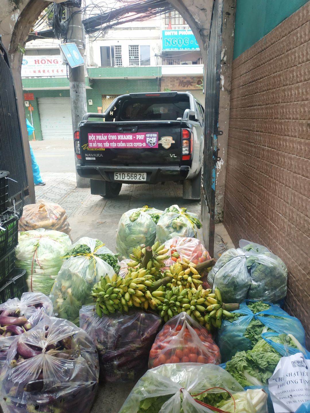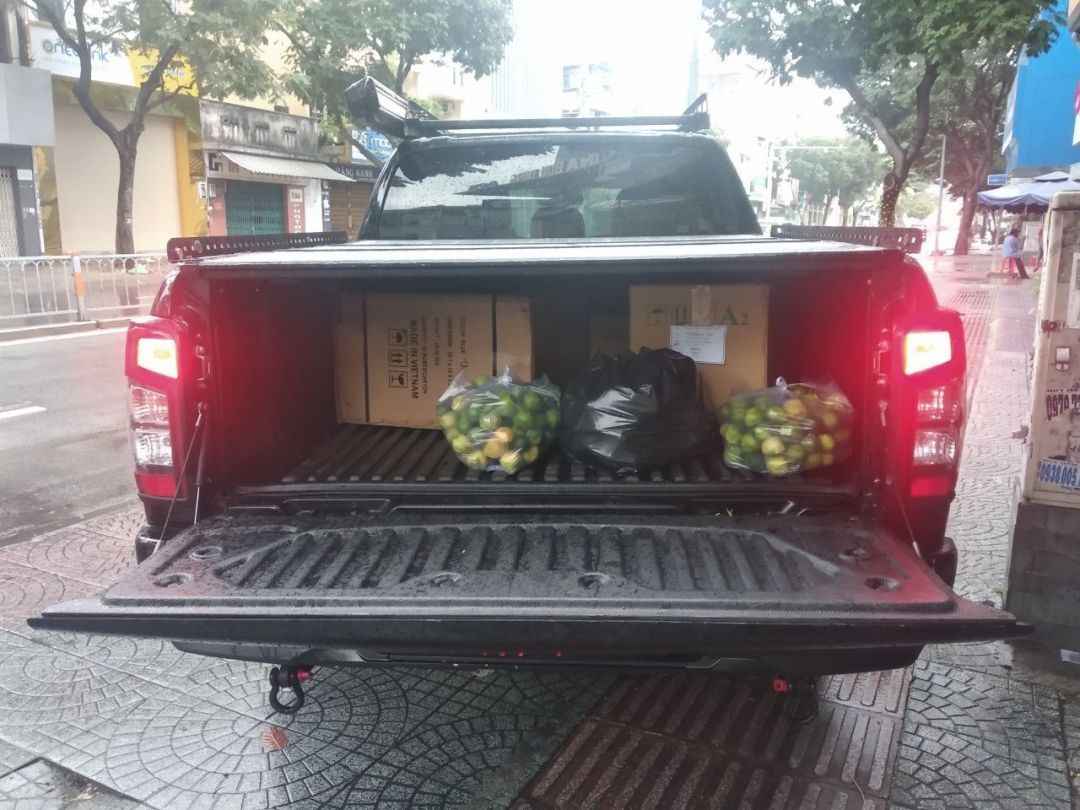 Chỉ thị 16+ Pro hạn chế các shipper hoạt động khiến cho việc giao nhận hàng trở nên khó khăn gấp bội lần, thật may có đội Phản Ứng Nhanh Pickup And Friends (PUN PNF) và những nhóm phản ứng nhanh khác đã xuất hiện kịp thời giúp đỡ vận chuyển thực phẩm để các Bếp từ thiện 0đ ở HCM vẫn tiếp tục đỏ lửa. Không ngoại lệ, "Bếp Nhà Yêu Thương" diễn ra suôn sẻ cũng nhờ một phần hỗ trợ  nhiệt tình của các anh bên nhóm PUN PNF khi vận chuyển thực phẩm, thuốc men những ngày qua. Ngoài giúp vận chuyển, nhóm PUN PNF thỉnh thoảng ủng hộ rau củ cho quán cơm nữa (hình ảnh bên dưới).